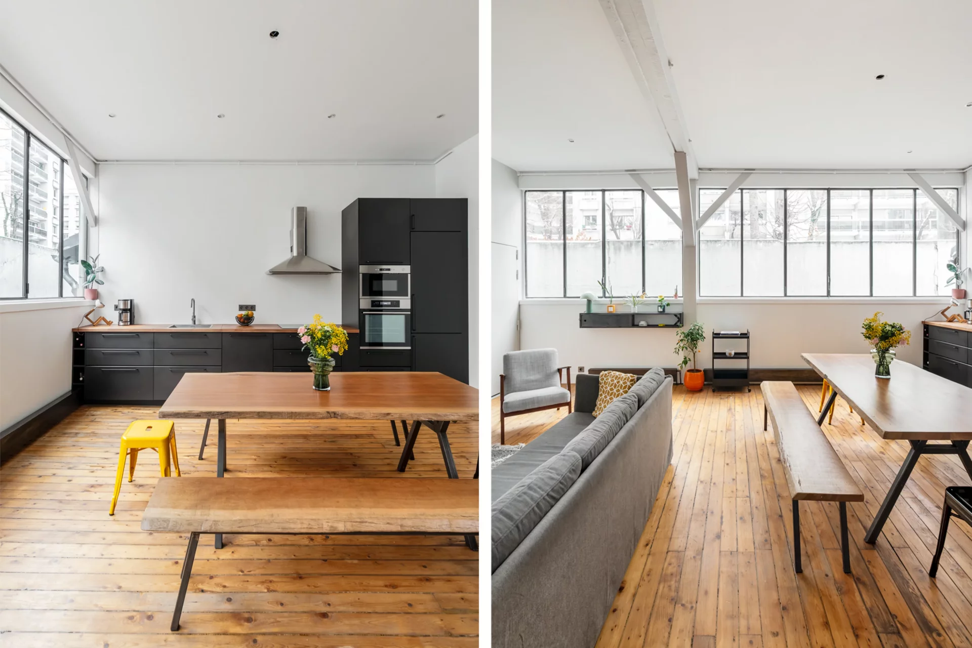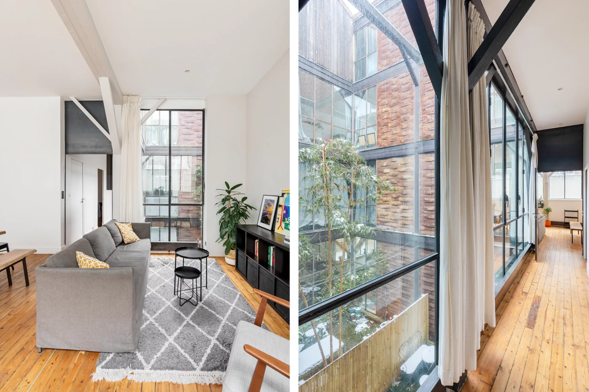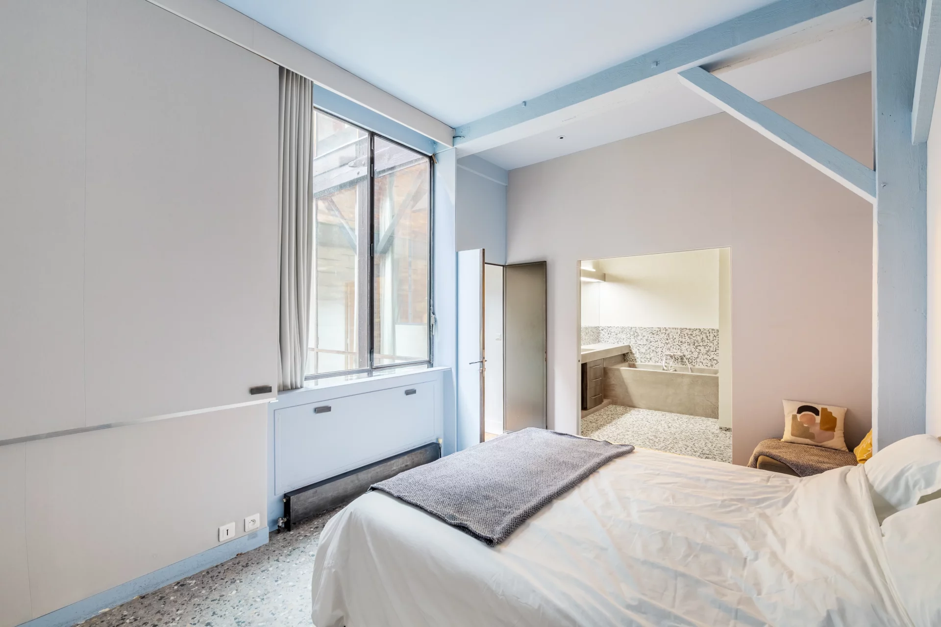 Set in a quiet, private tree-lined lane, in a former washhouse from the last century, renovated by a renowned architect, this beautiful loft-style apartment, with a surface area of 79.51sqm, features an optimized layout with no loss of space.