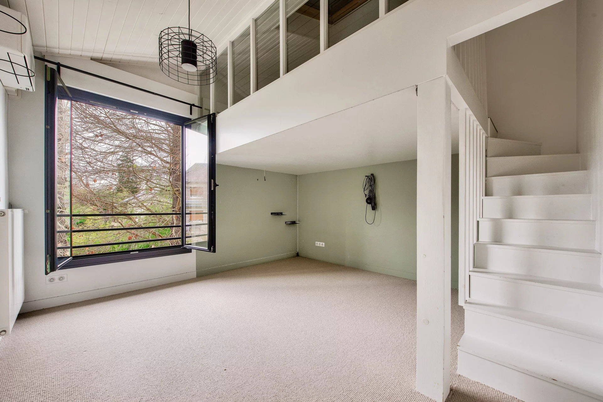 Upstairs, the sleeping area features three air-conditioned bedrooms, one of which has a mezzanine converted into an office space, as well as a bathroom, a shower room, a laundry room and a games area. The roof windows are equipped with motorized external shutters.