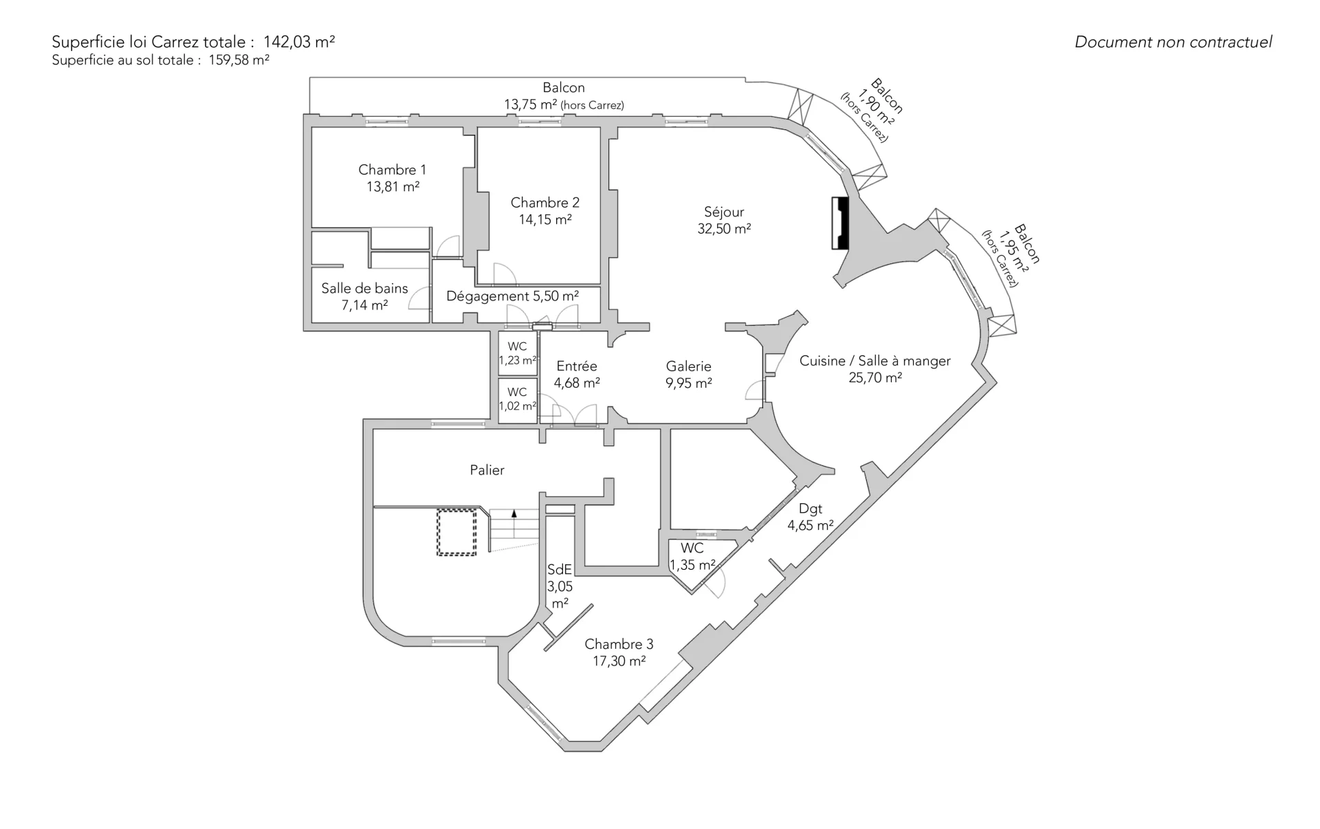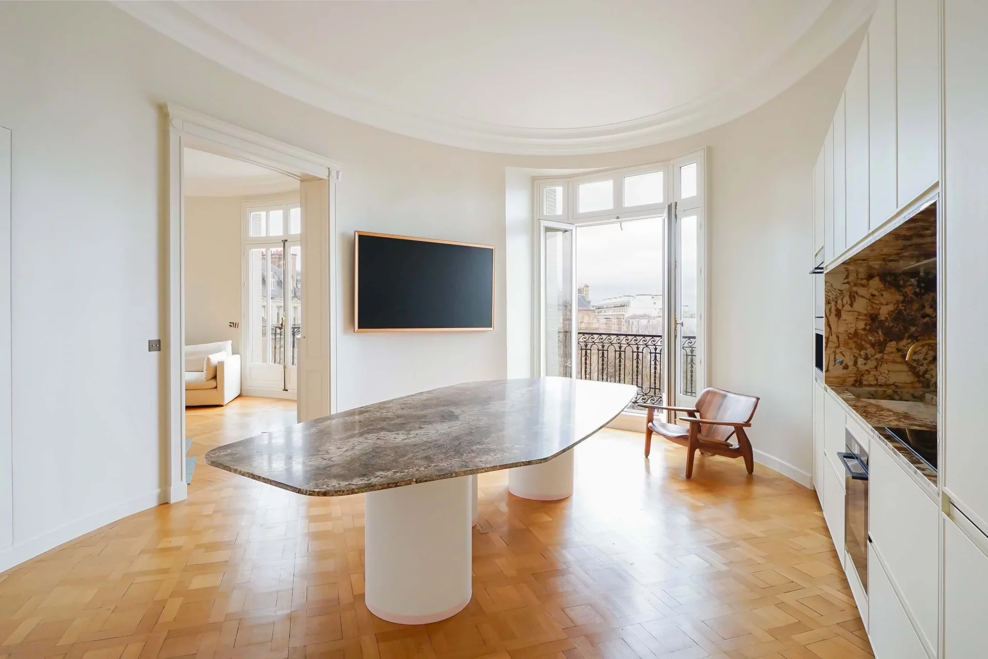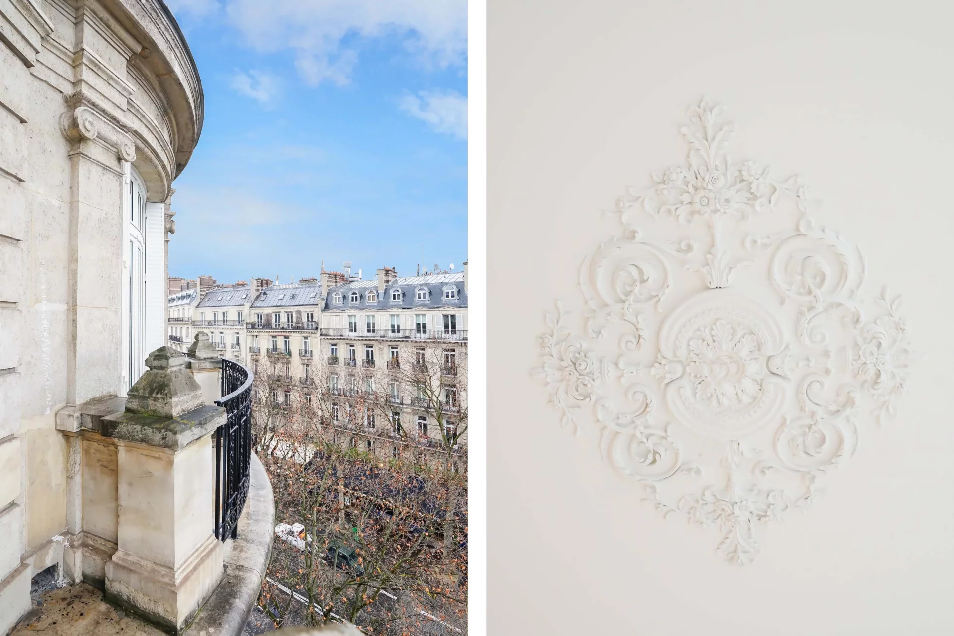 Seventeen square meters of continuous balconies extend the reception rooms and offer the opportunity to fully enjoy the exceptional views of Parisian landmarks.