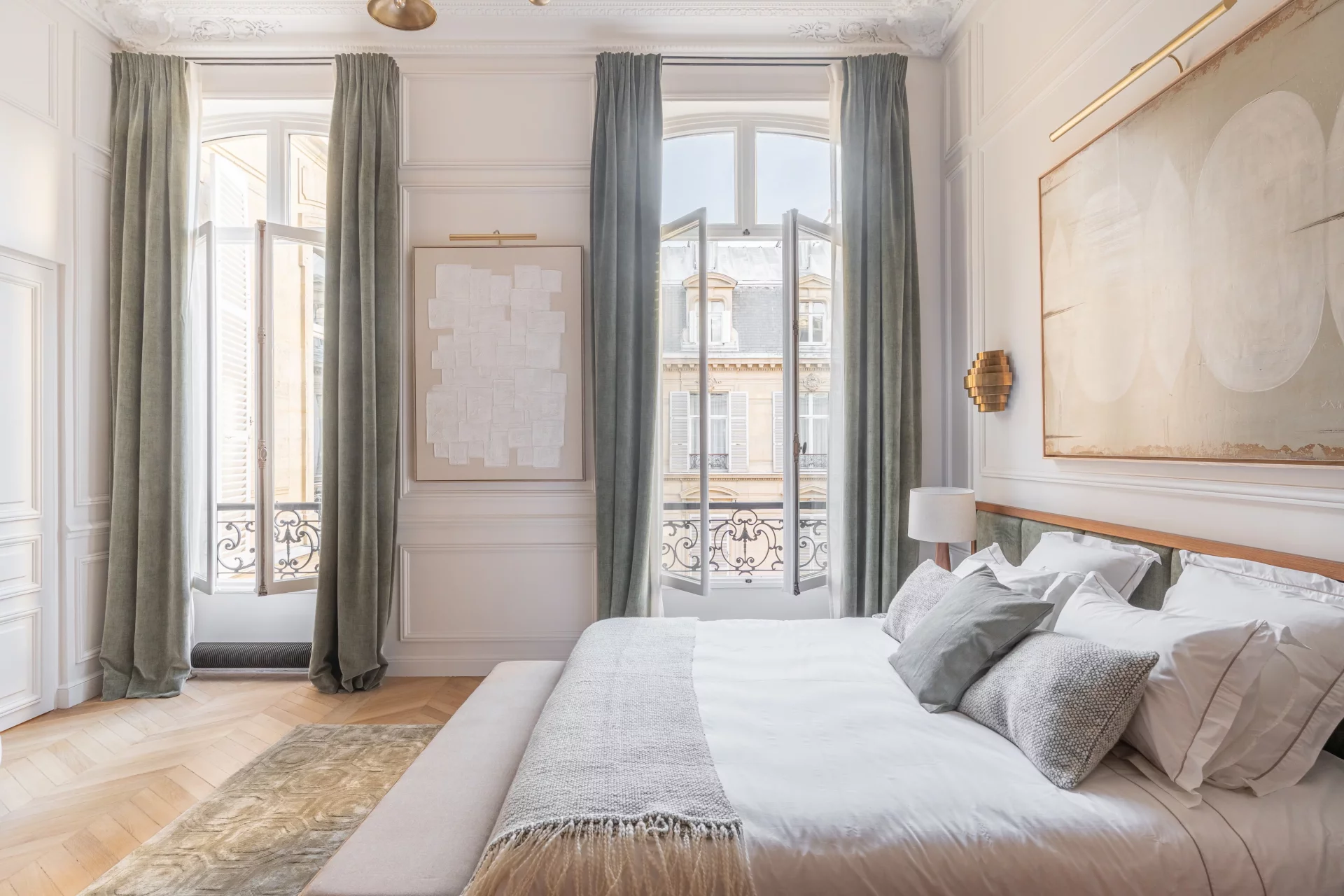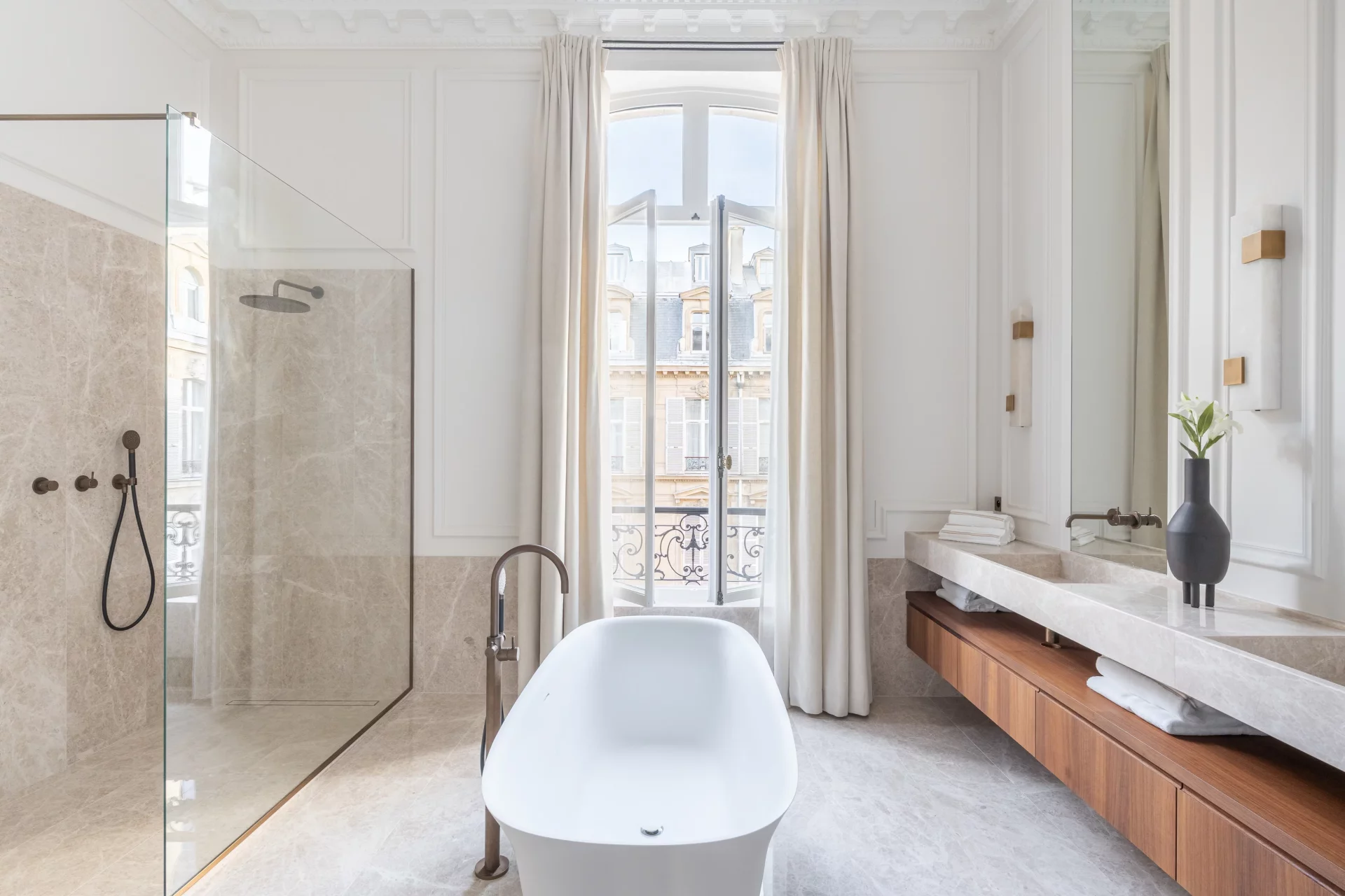 Entirely renovated by an architect using top-of-the-range materials, it elegantly combines old-world charm with contemporary comfort. It boasts exceptional ceiling heights of 4 meters, enhanced by superb parquet flooring, moldings and period fireplaces.