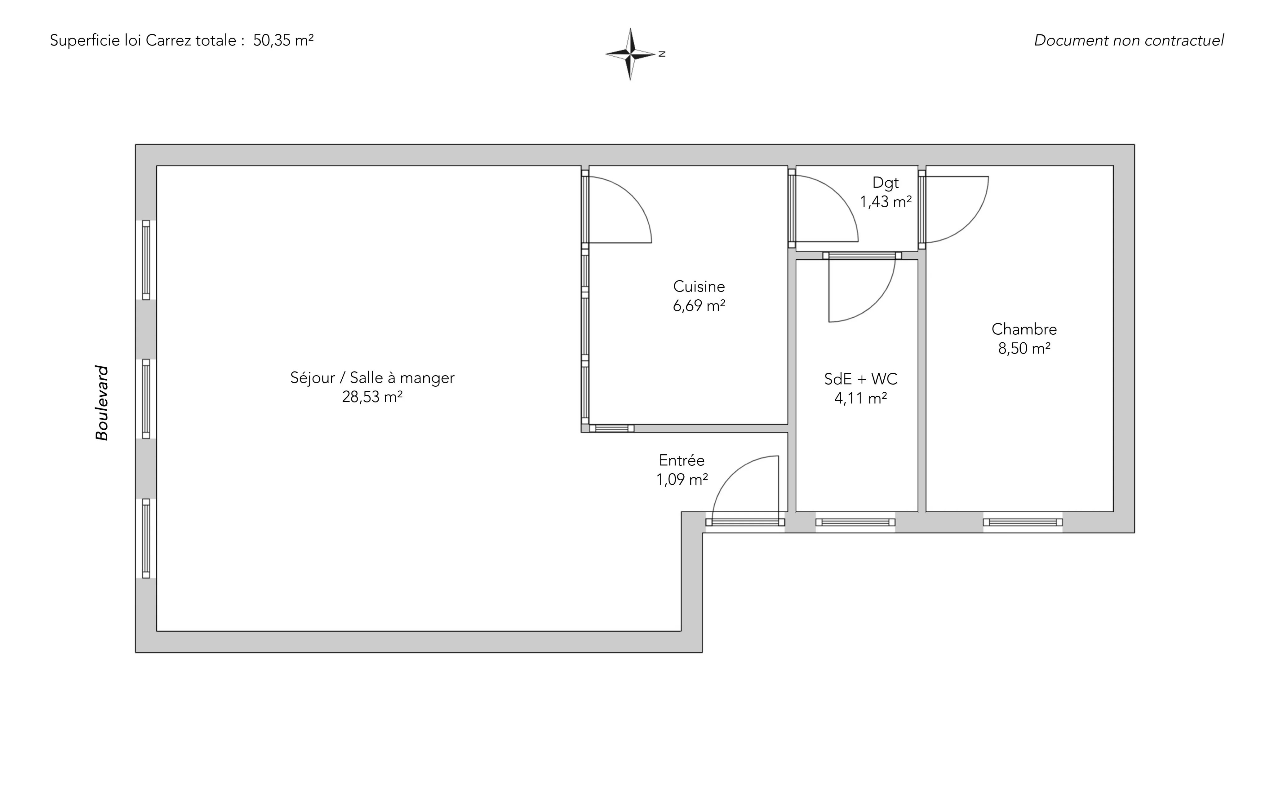 Ideally located in the heart of boulevard Saint-Germain, close to rue des Saints-Pères, this charming 50.35sqm loi Carrez apartment on the fifth floor by staircase of a building entirely renovated in 2018 benefits from an efficient floor plan.