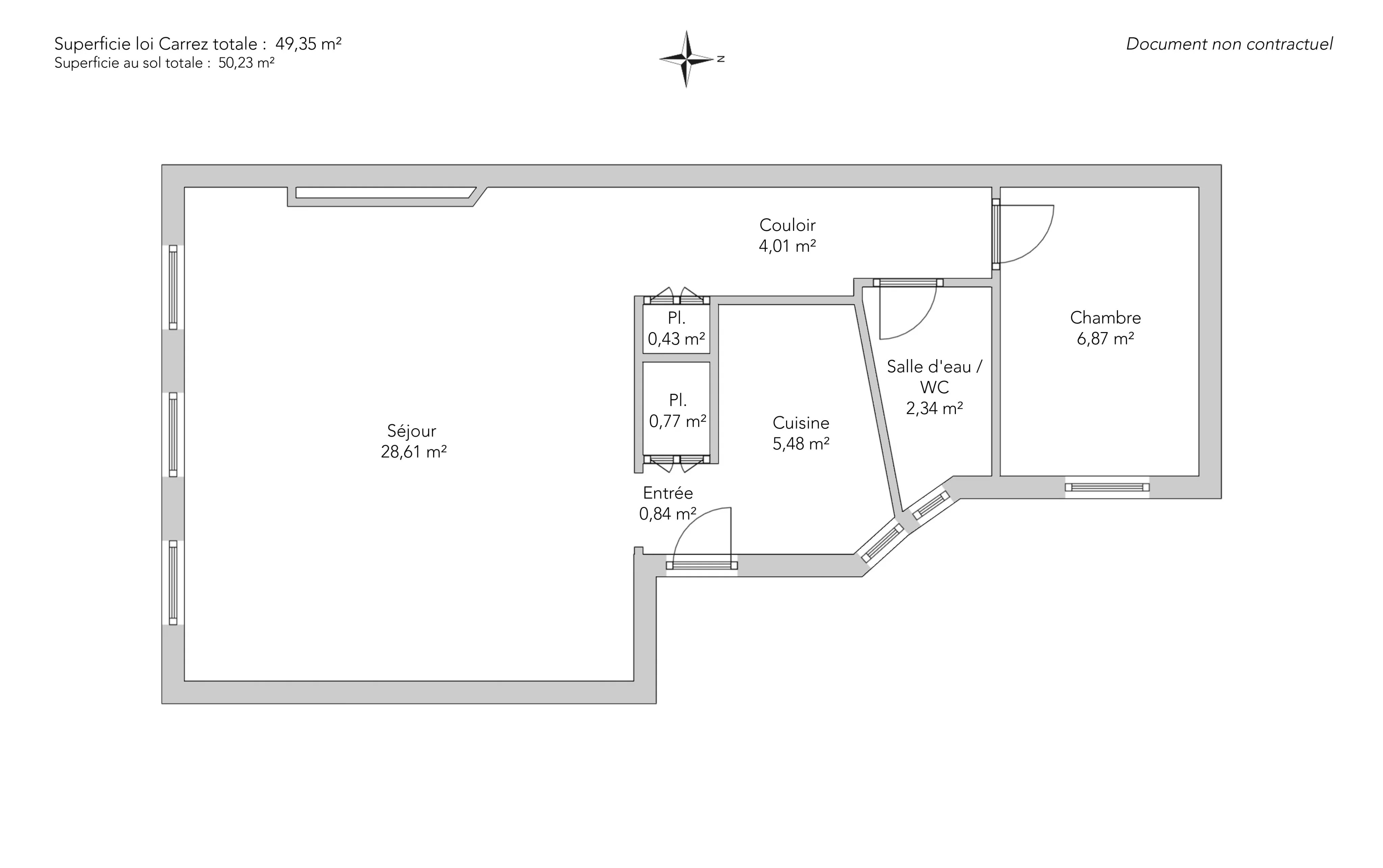 - Habitable : 531,20 Sq Ft Total : 540,67 Sq Ft