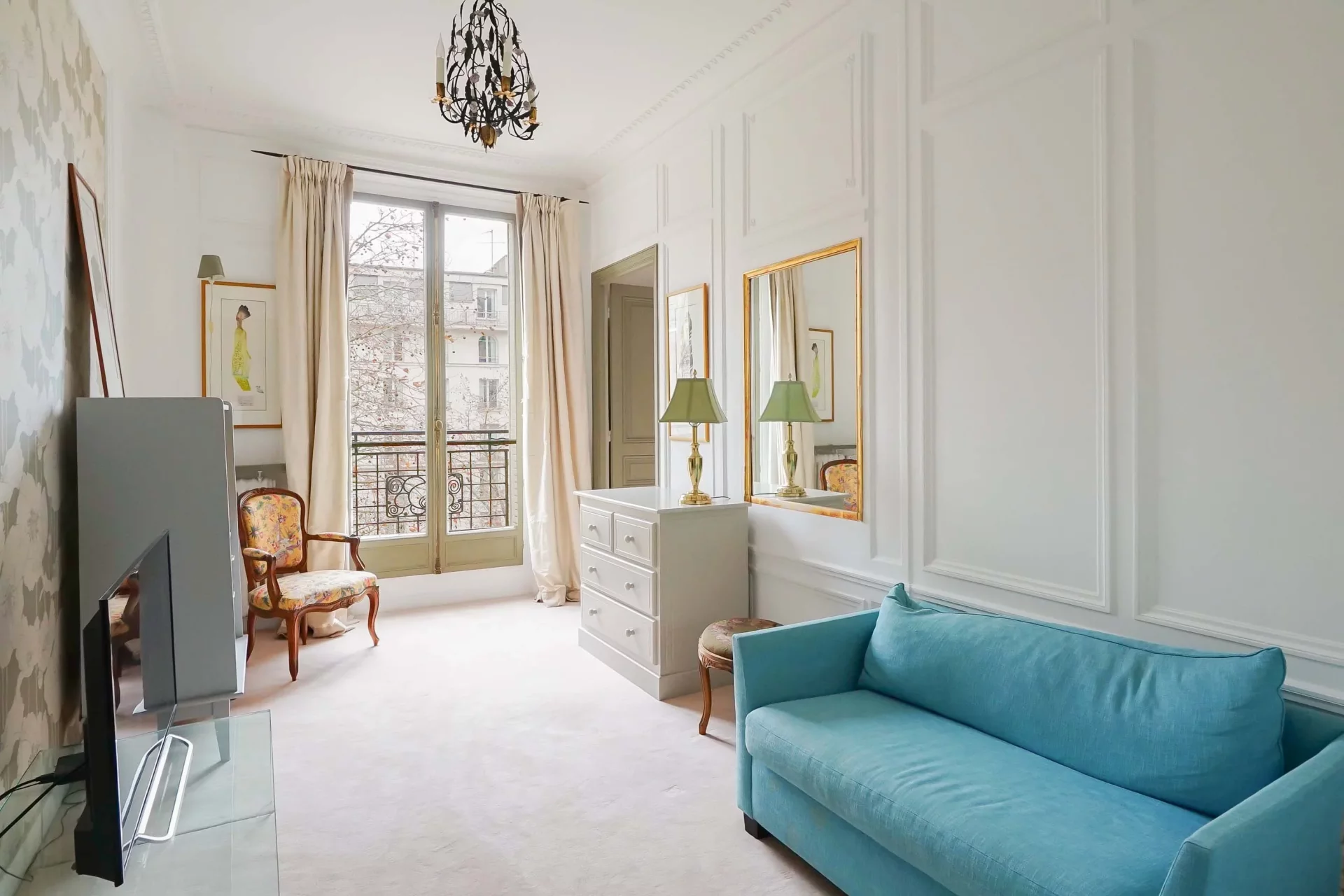 Antique parquet flooring, moldings and a fireplace underline the charm and authenticity of this rare property, combining the character of the past with an exceptional Parisian location.