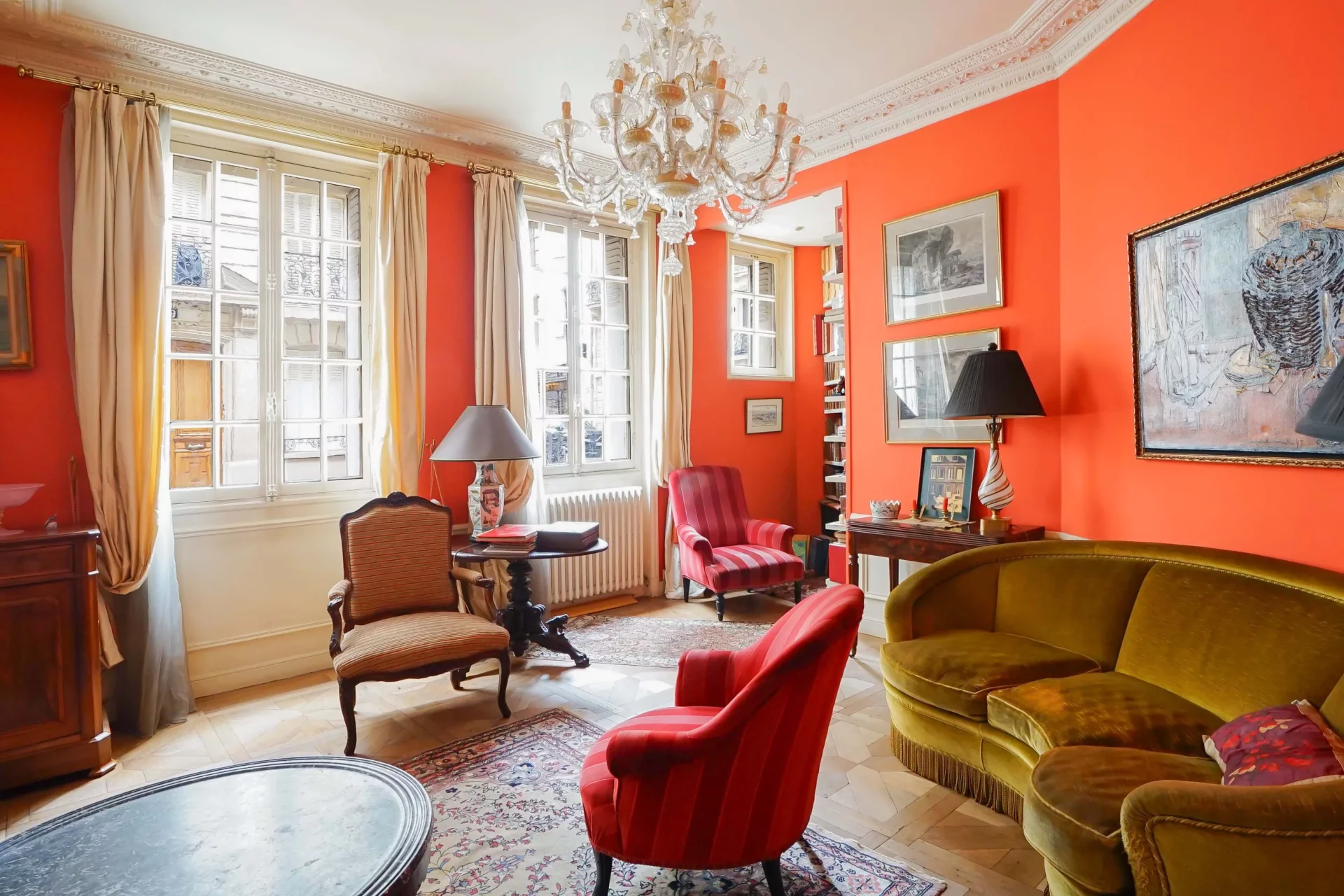 This property, in very good condition, will seduce you with its sought-after location, its through aspect, its fully preserved old-world charm with moldings, Versailles parquet flooring, fireplace and 3.04-meter high ceilings.