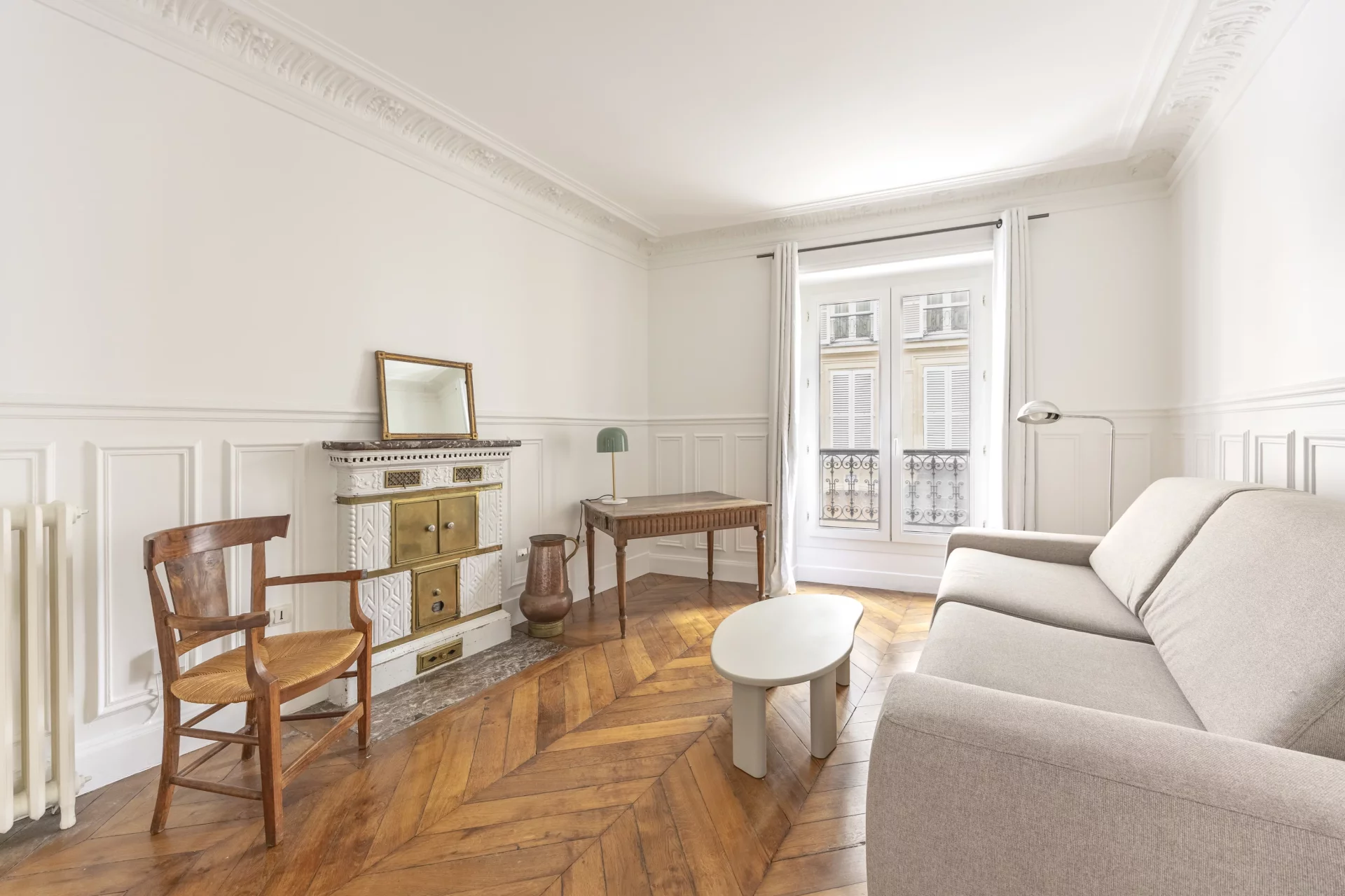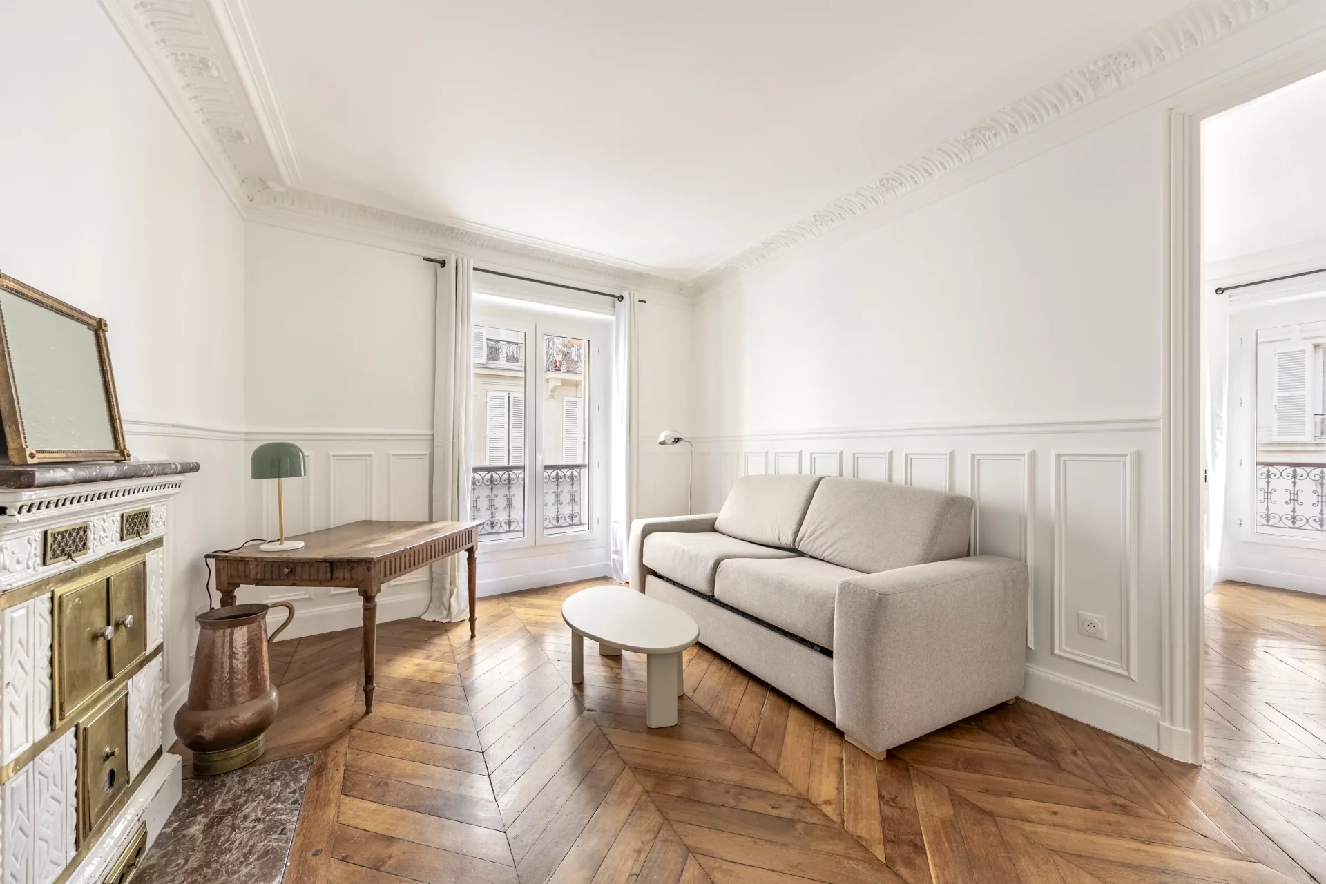 Ideally located in the heart of the Rochechouart district, right next to Square Montholon, this superb 72.84sqm furnished apartment has been recently renovated to a very high standard. On the second floor by staircase of an elegant freestone building, this apartment benefits from the natural gradient of rue Pierre Semard, giving it a real height equivalent to a 3rd or even 4th floor on the living room and bedroom sides, offering plenty of light, unobstructed views and a particularly calm environment.