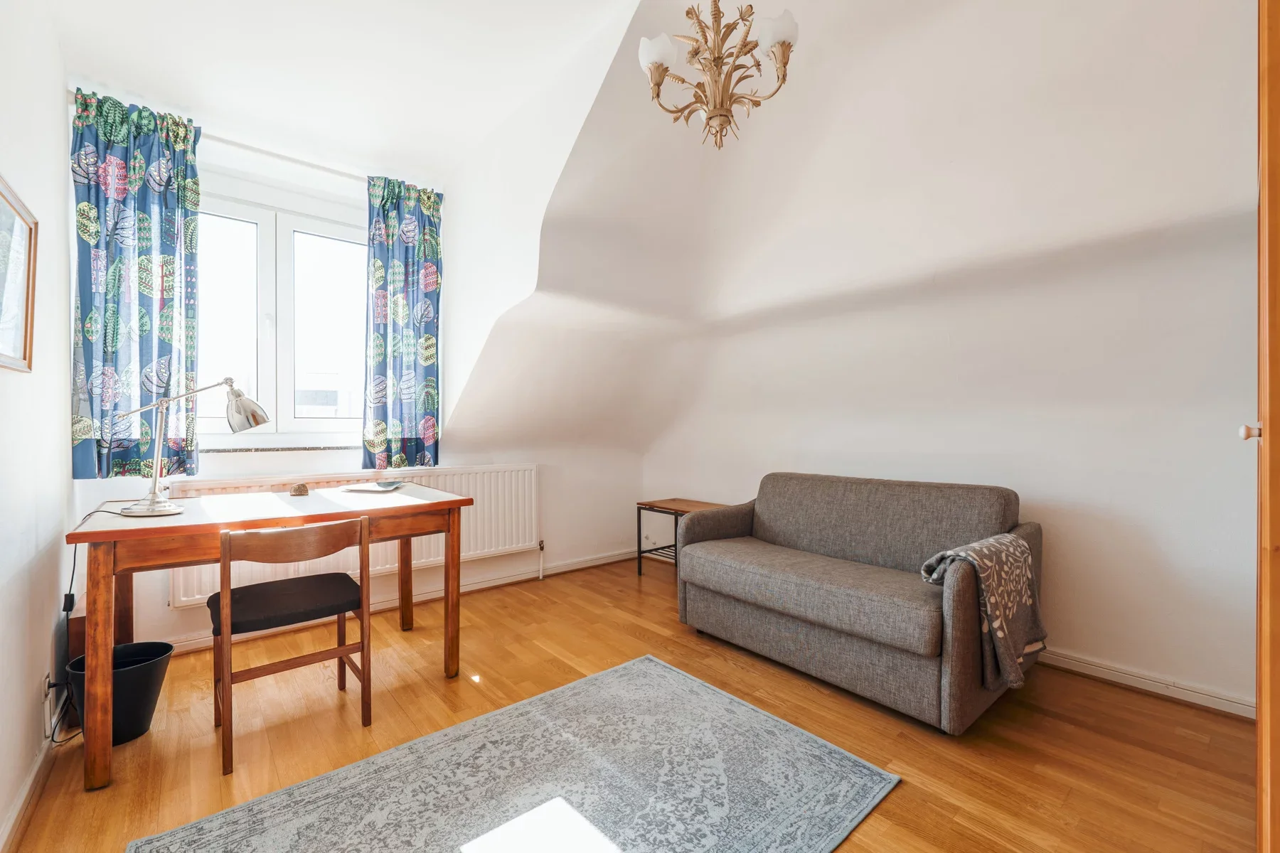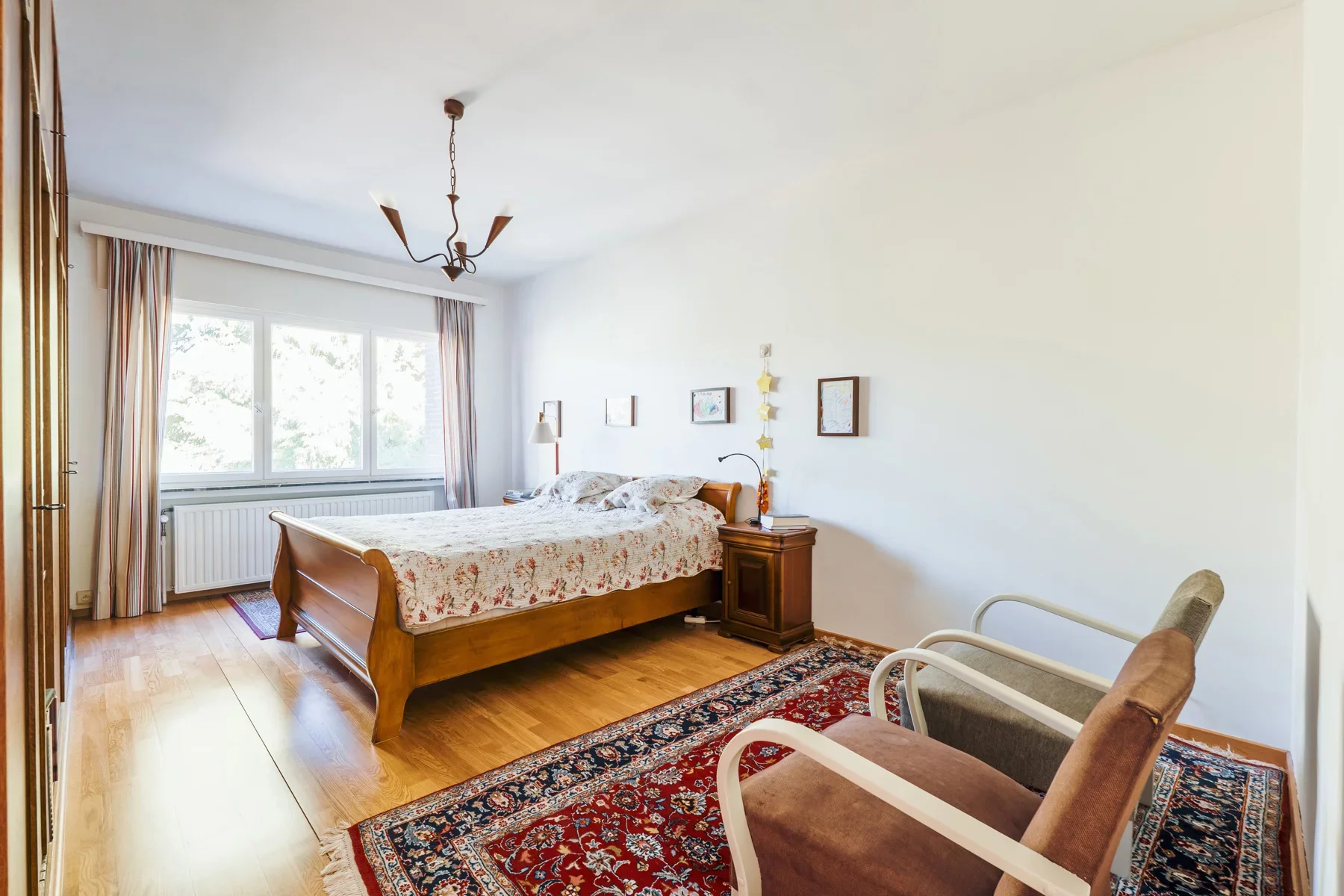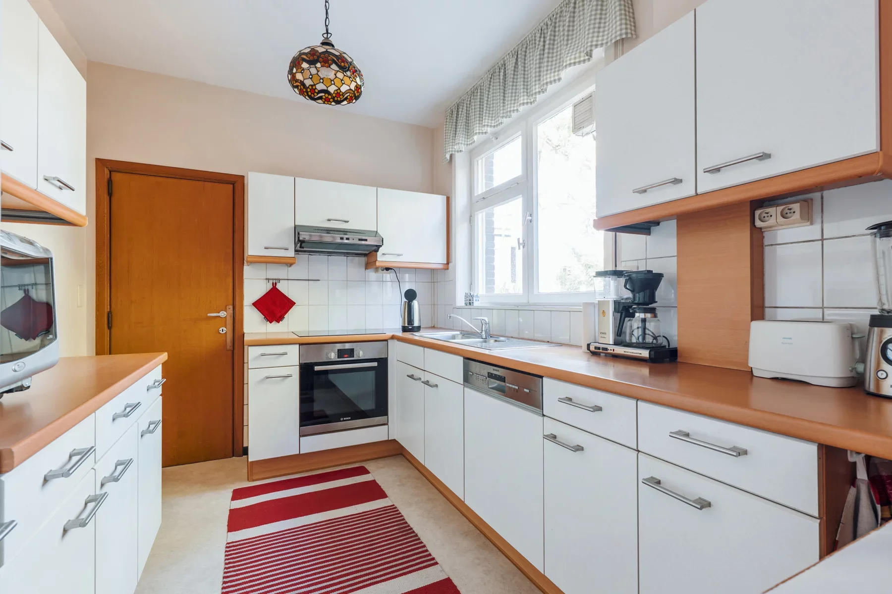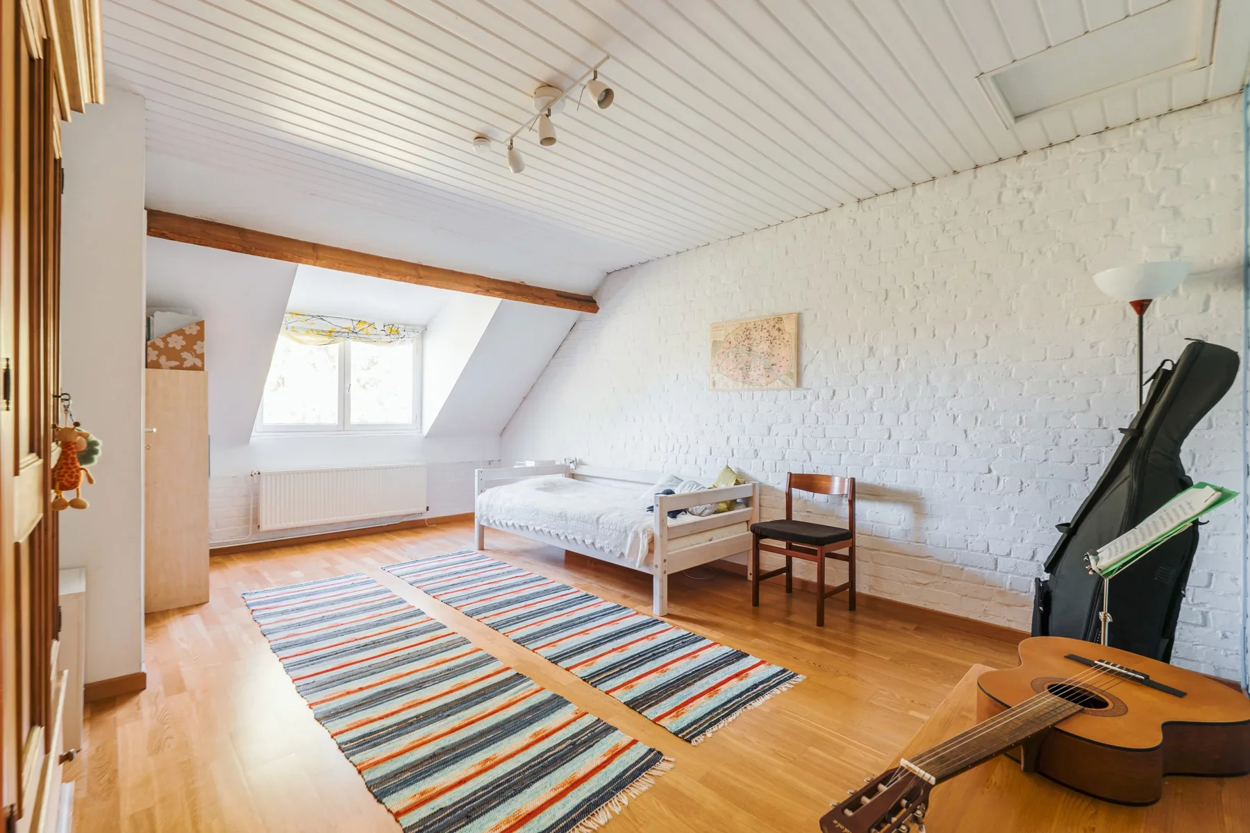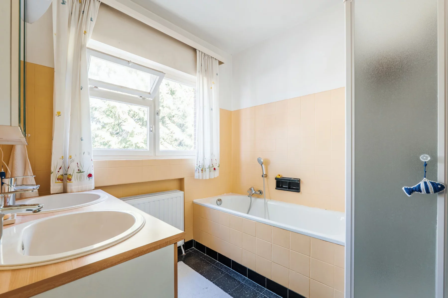 Second floor: two bedrooms, a shower room with washbasin, and an attic space. Basement: two large garages with additional parking space on the driveway (+ possibility for motorbike/bicycles), storage cellar, oil-fired boiler room, and laundry room with sink. PEB F