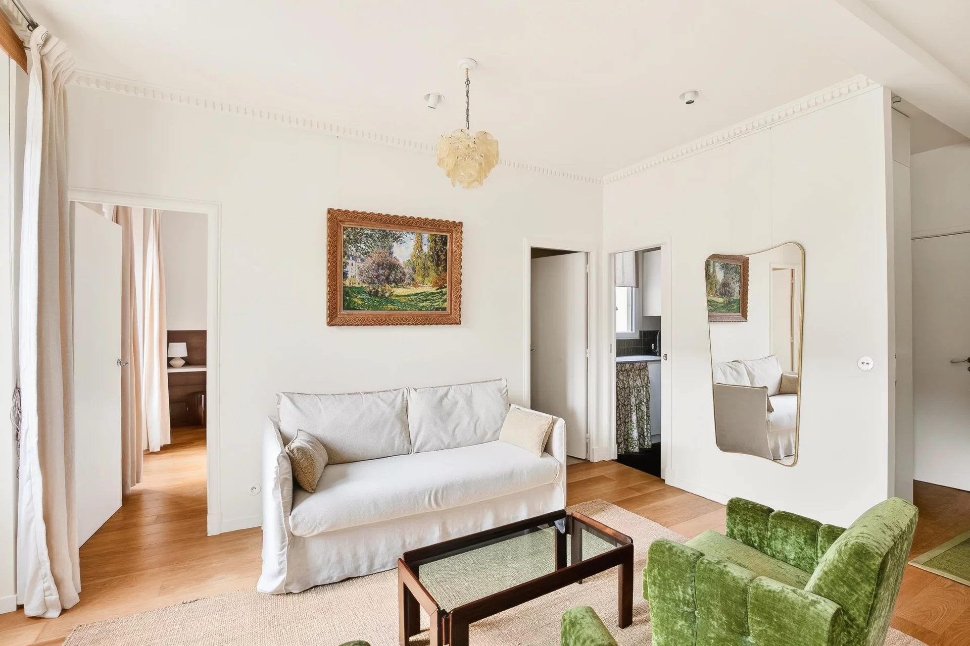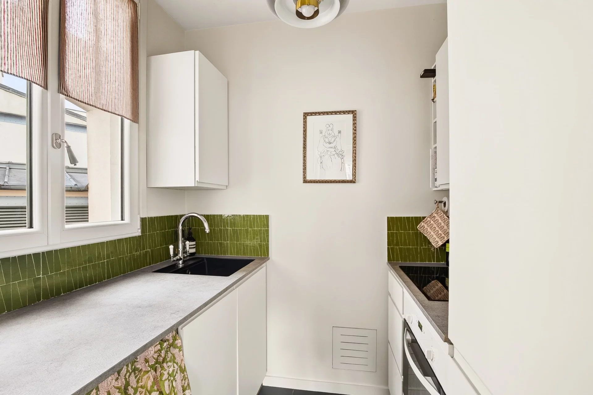 The renovation is of high quality. The apartment benefits from a quiet setting and plenty of natural light.