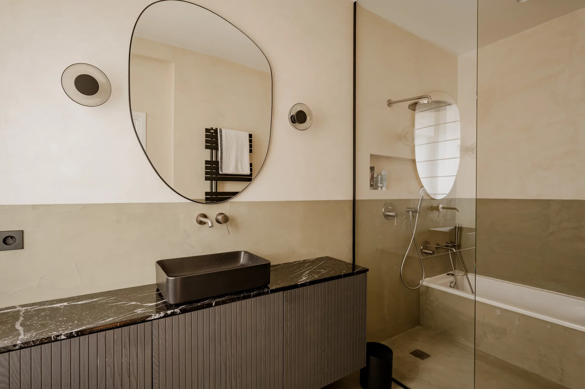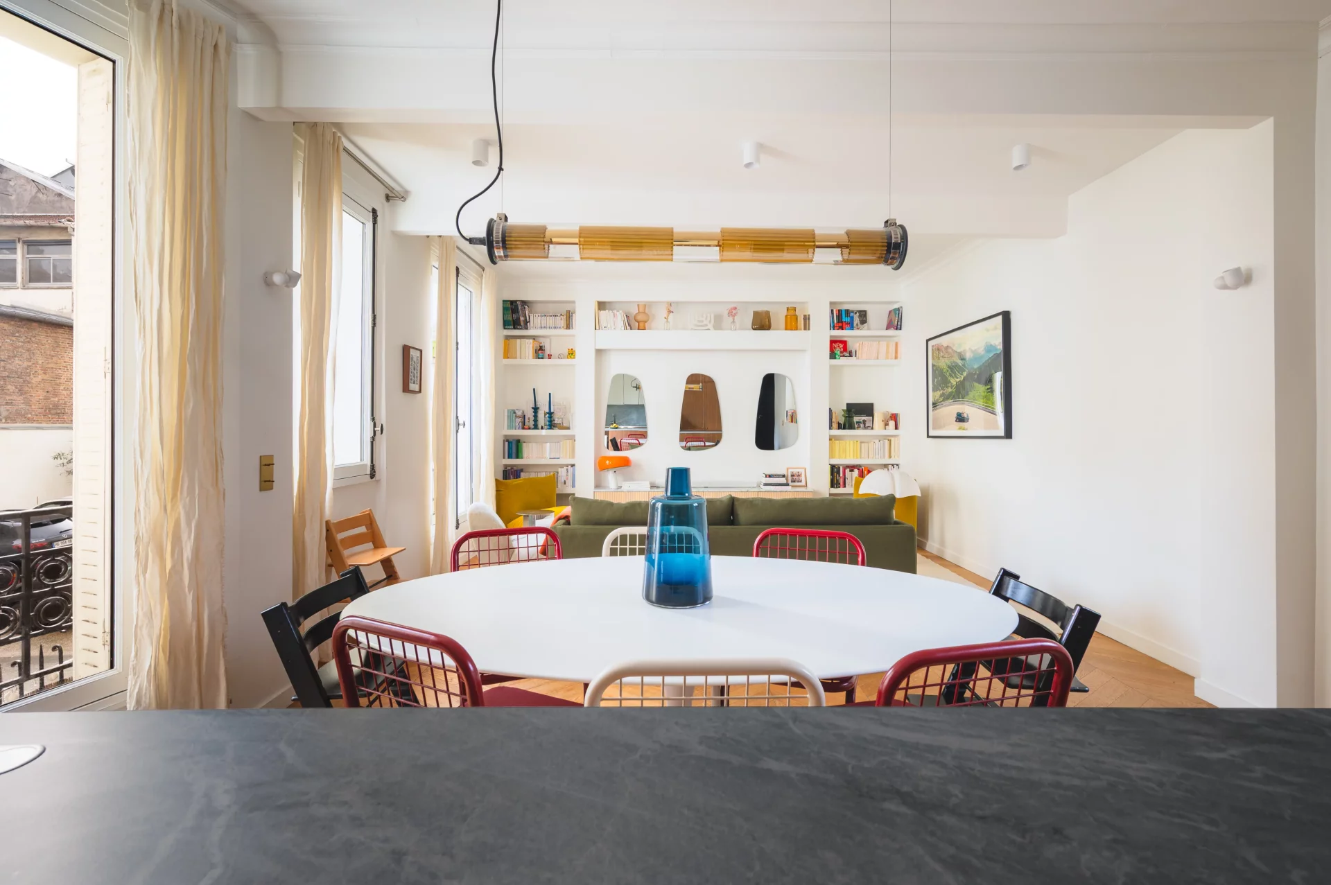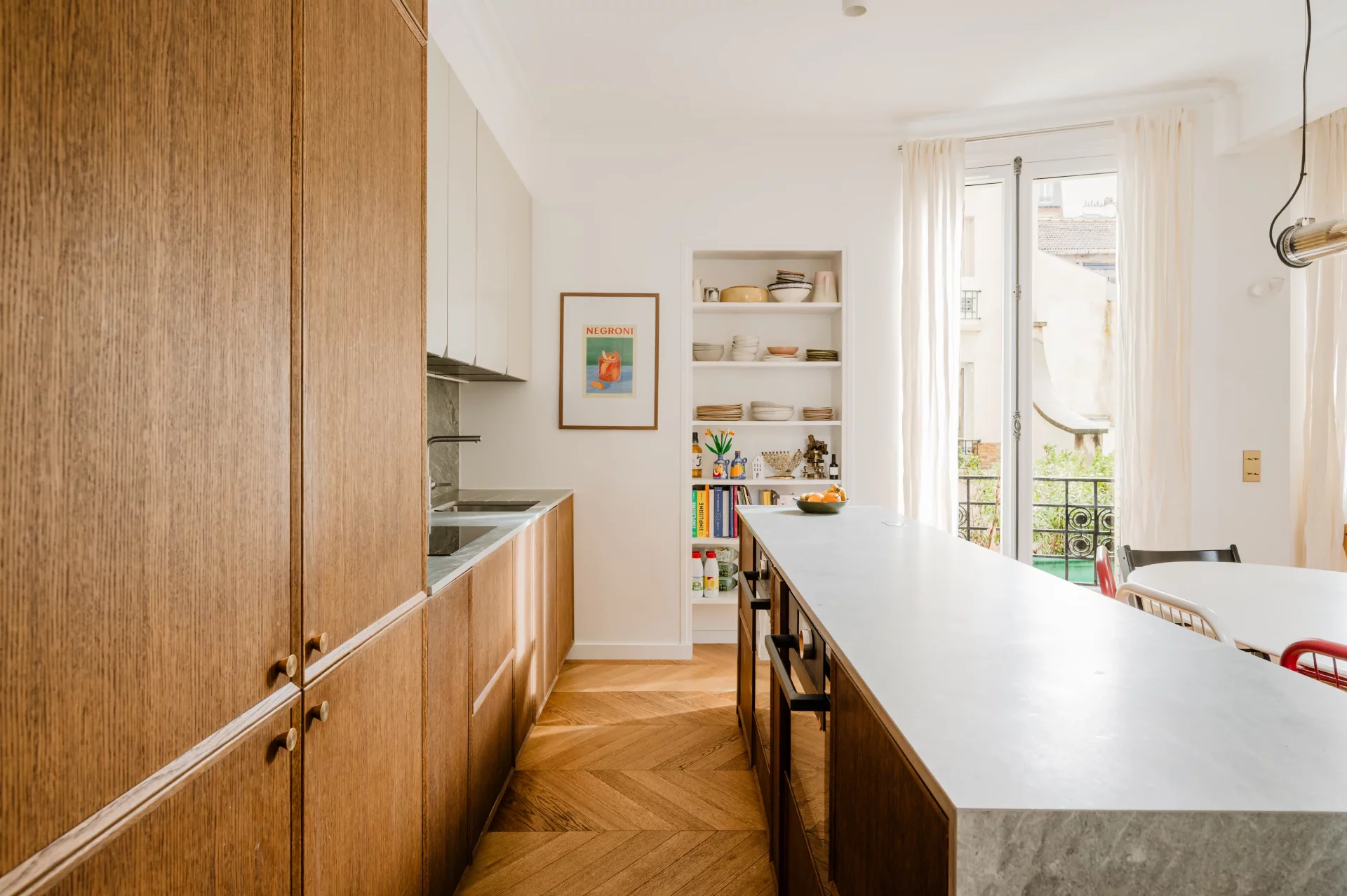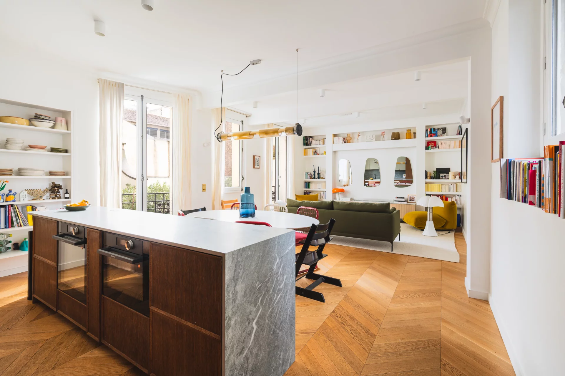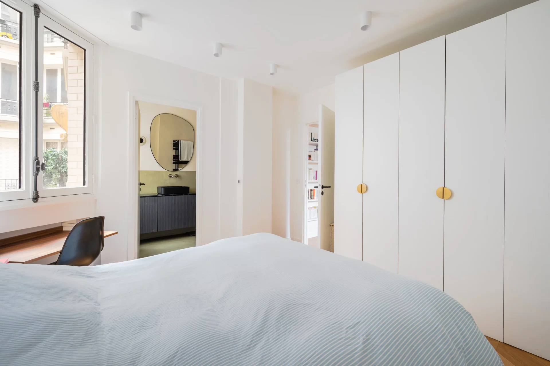 In absolute calm, with its bright living room, this apartment will seduce you with its harmonious volumes, meticulous finishes and numerous built-in storage spaces.
