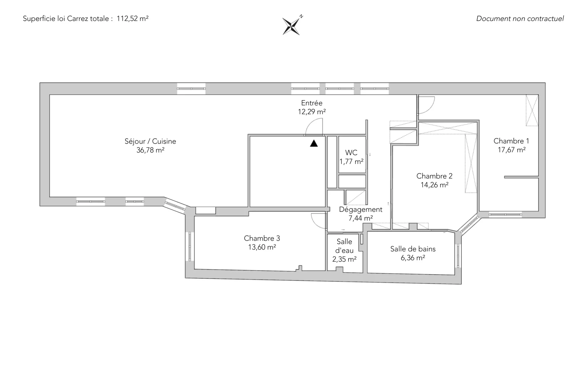 It comprises an entrance hall with plenty of custom-made storage space, a vast double living room with open kitchen, bathed in light thanks to a double east-west exposure, offering a convivial and refined living environment.