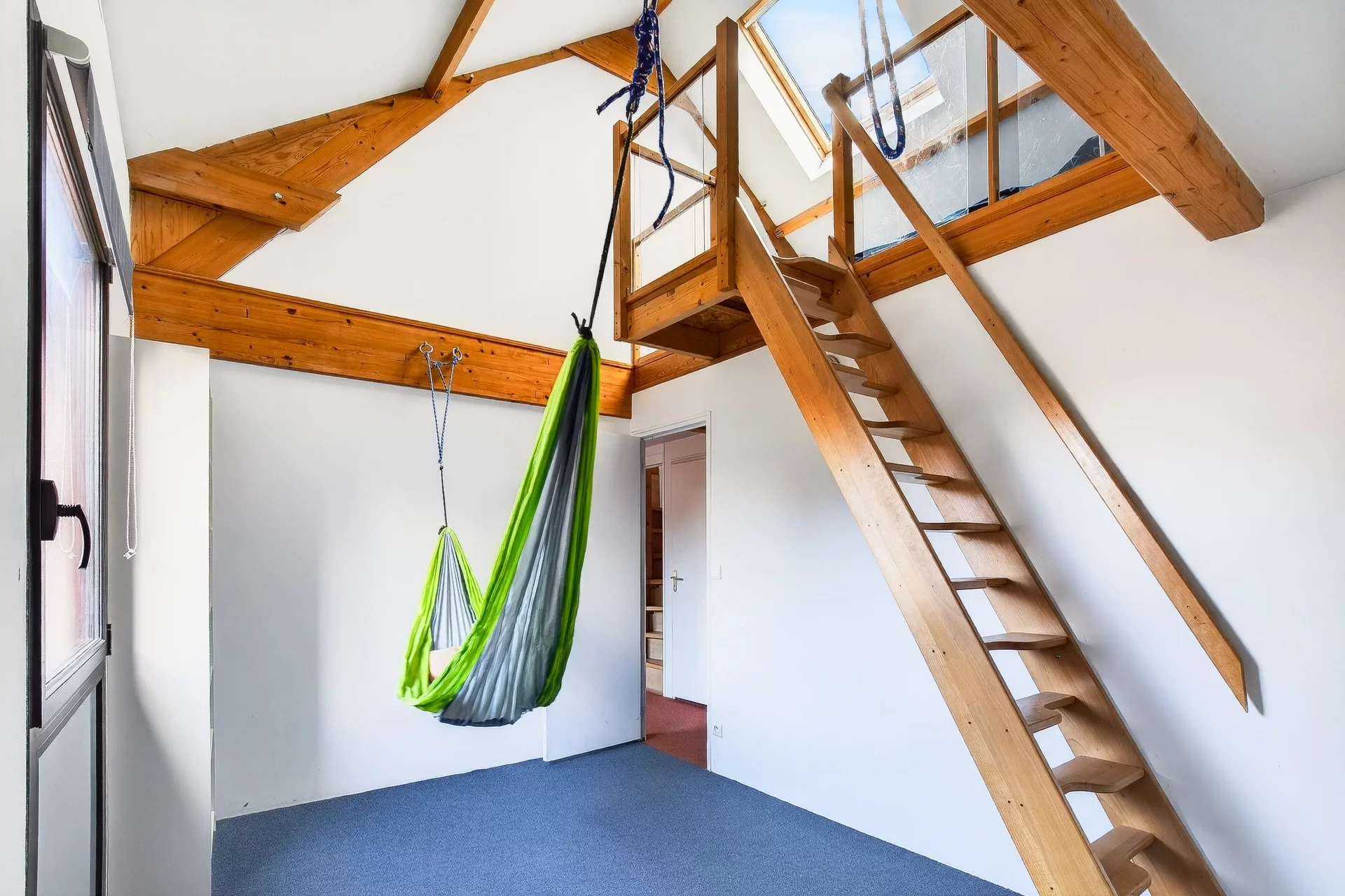 The attic level offers a sixth bedroom, ideal for a teenager, workshop or workspace.