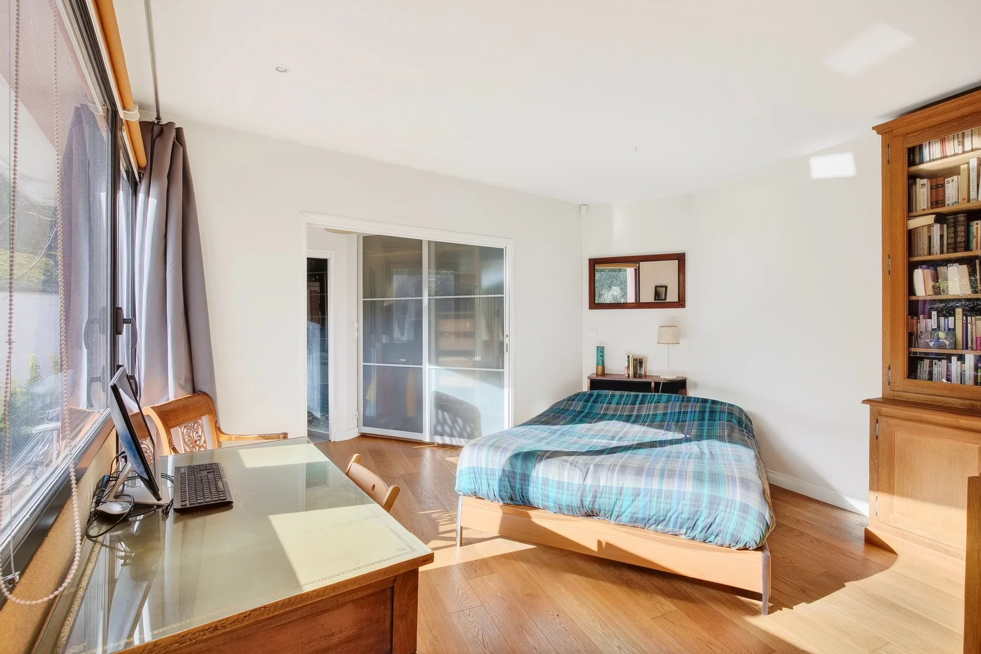 Set in one of Viroflay Rive Gauche's most sought-after neighborhoods, appreciated for its proximity to transportation, schools, shops and the forest, this handsome, contemporary home with many rooms is distinguished by an exceptional ecological design chosen by its owners. It combines a Canadian well, a pellet-fired boiler with underfloor heating, a wood-burning stove, thermodynamic and solar hot water production, and a rainwater recovery system.