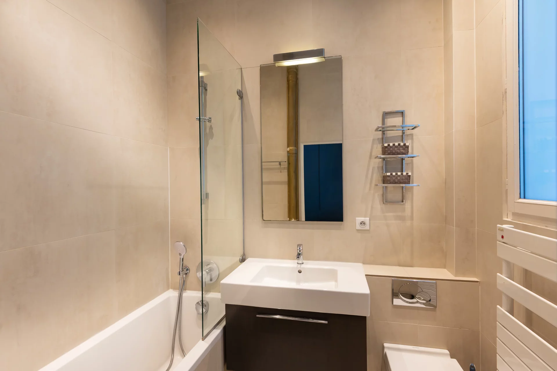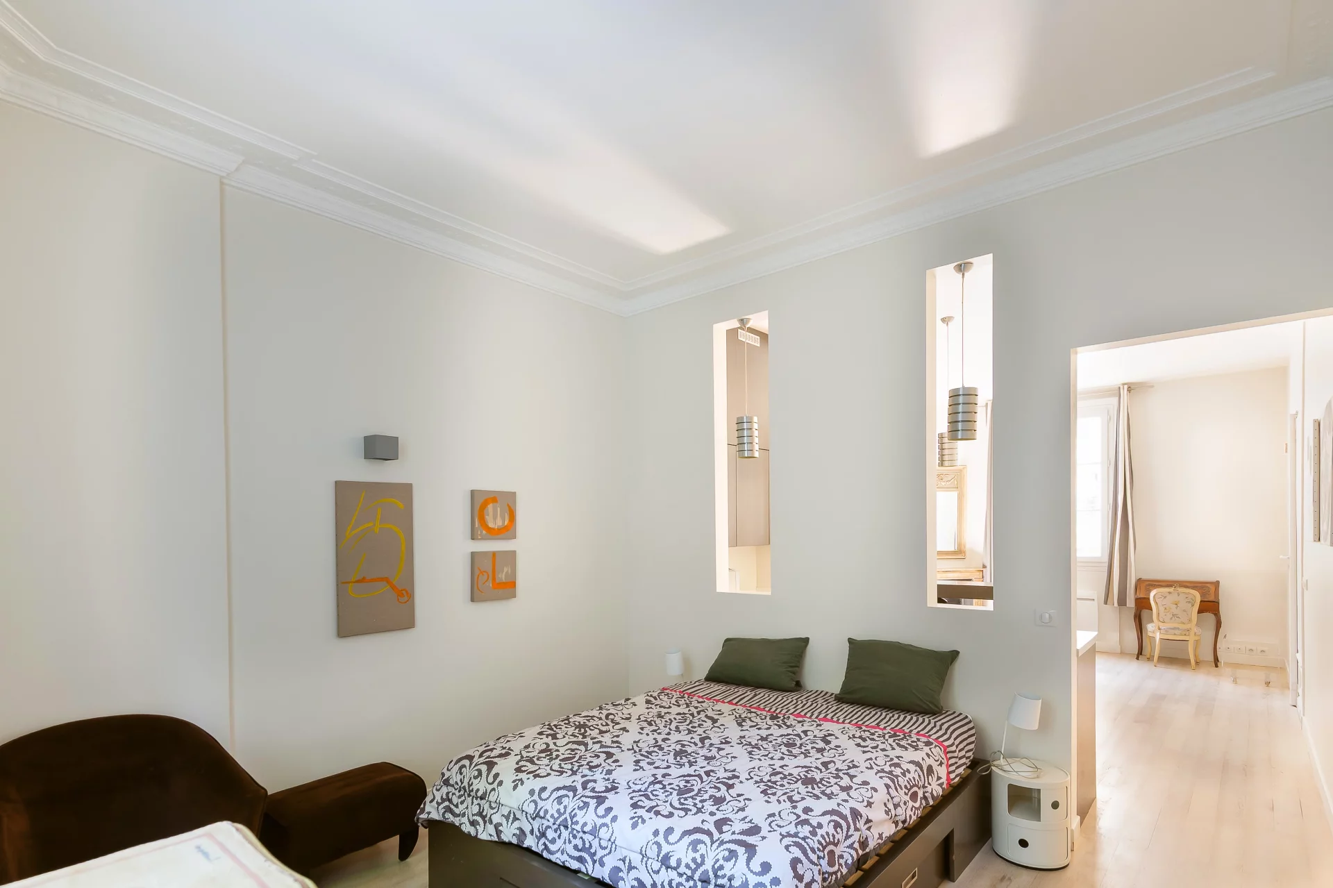 This charming two-bedroom apartment (42.21sqm) features a private terrace. In perfect condition and tastefully decorated, it comprises: a living room, an open-plan fitted kitchen, a semi-open-plan bedroom, a bathroom with toilet and a dressing room. Crossing east/west. Bright and very quiet. It features a pleasant private terrace, well-appointed fixtures and fittings and a perfectly optimized layout.