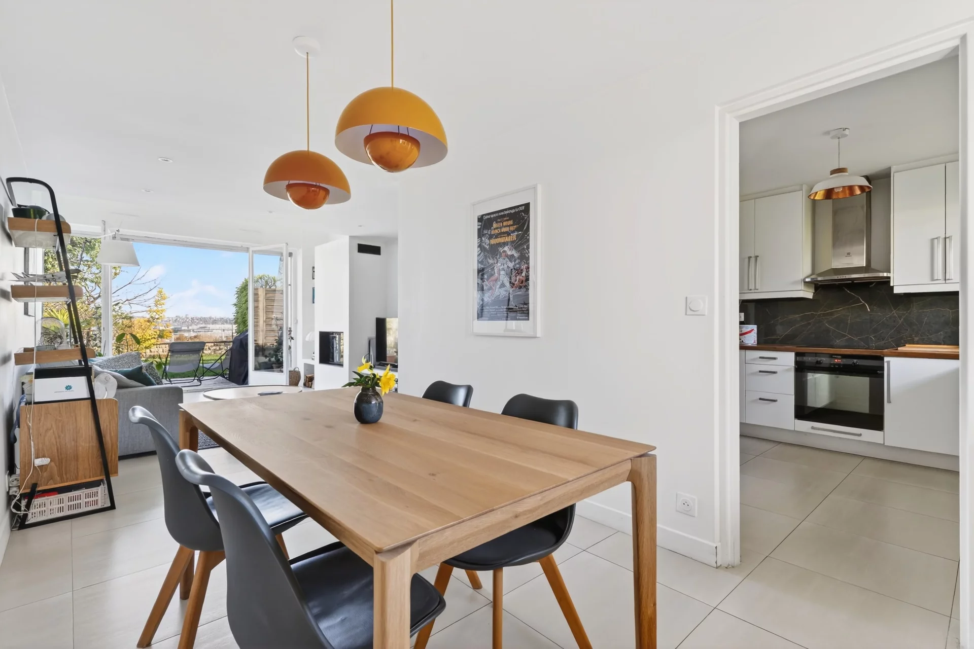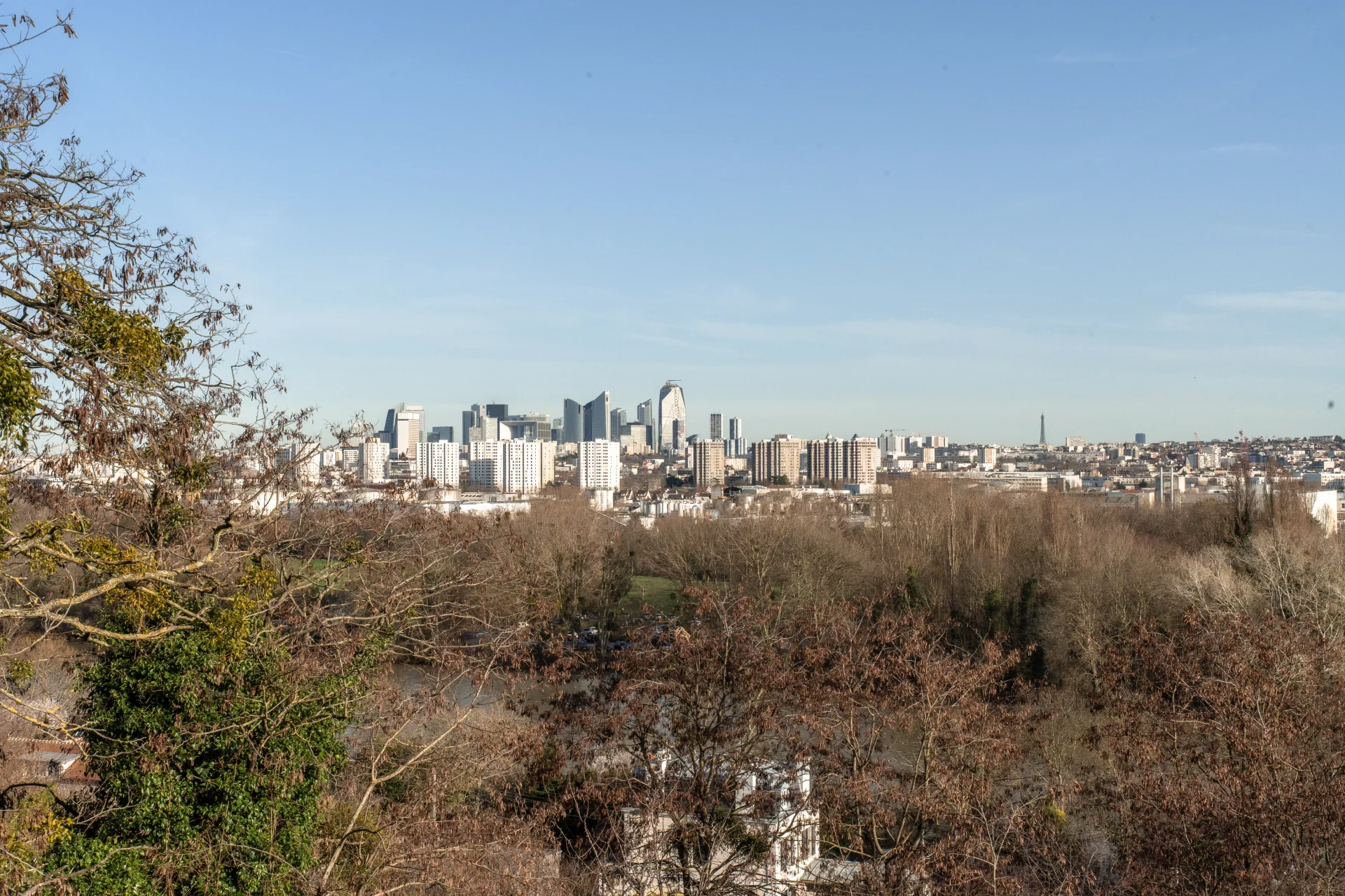The first floor comprises an entrance hall, a fitted and equipped kitchen opening onto a dining room, extended by a bright living room with fireplace, opening onto a pleasant garden with a terrace offering a magnificent panoramic view of Paris and the Eiffel Tower.