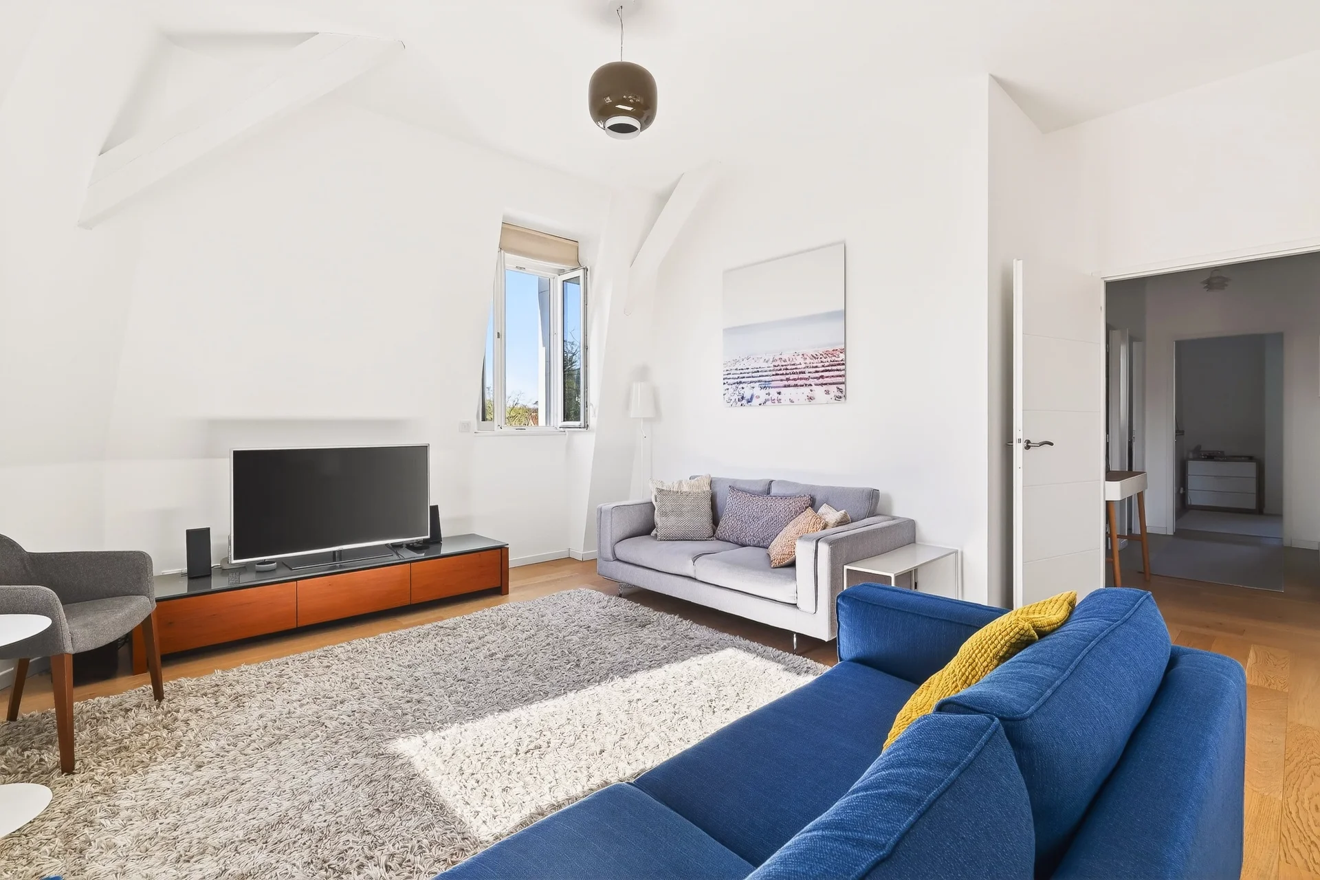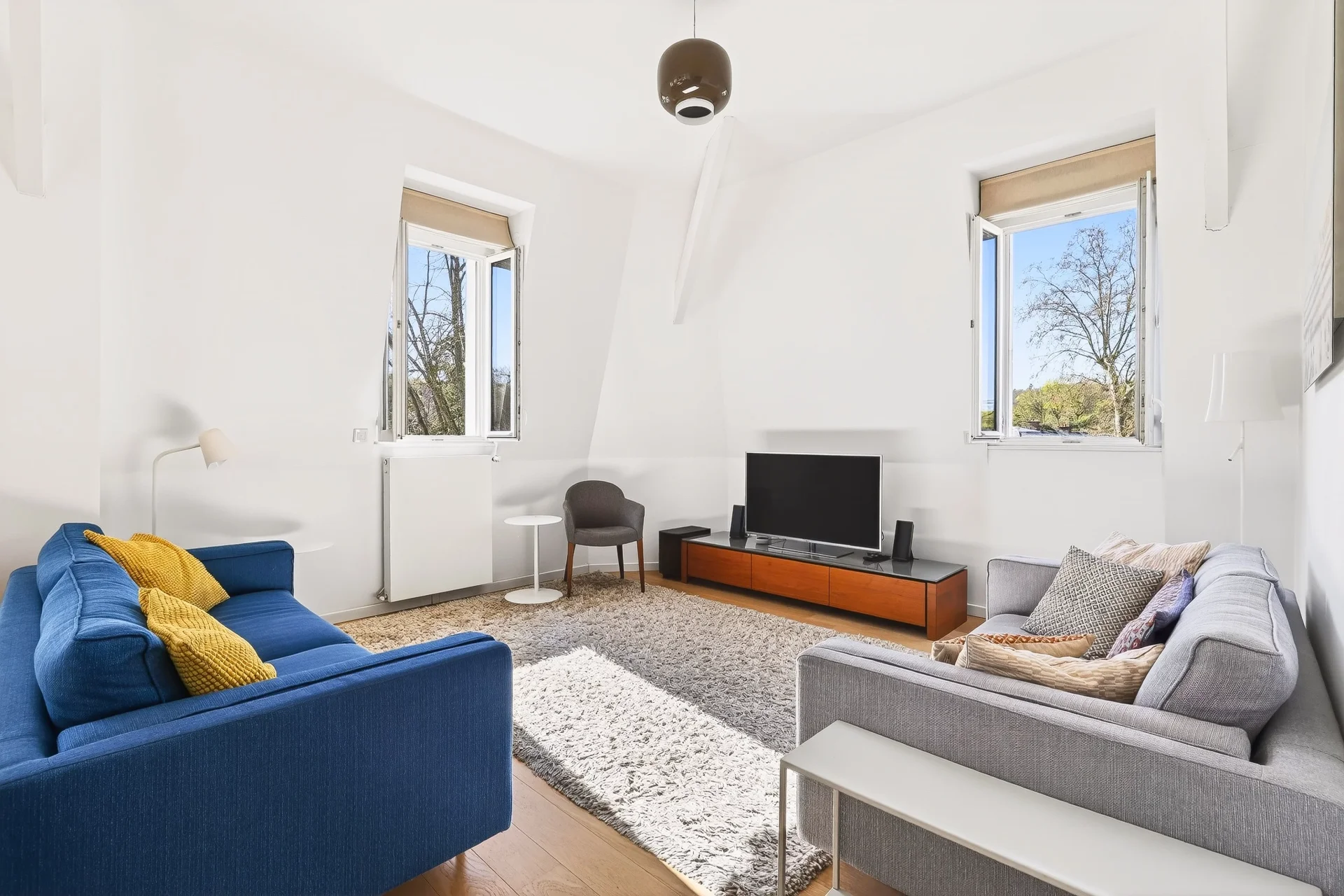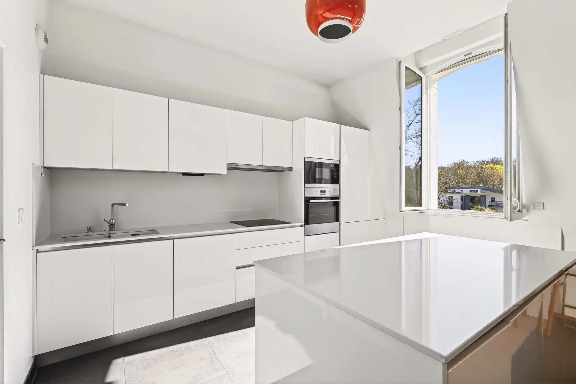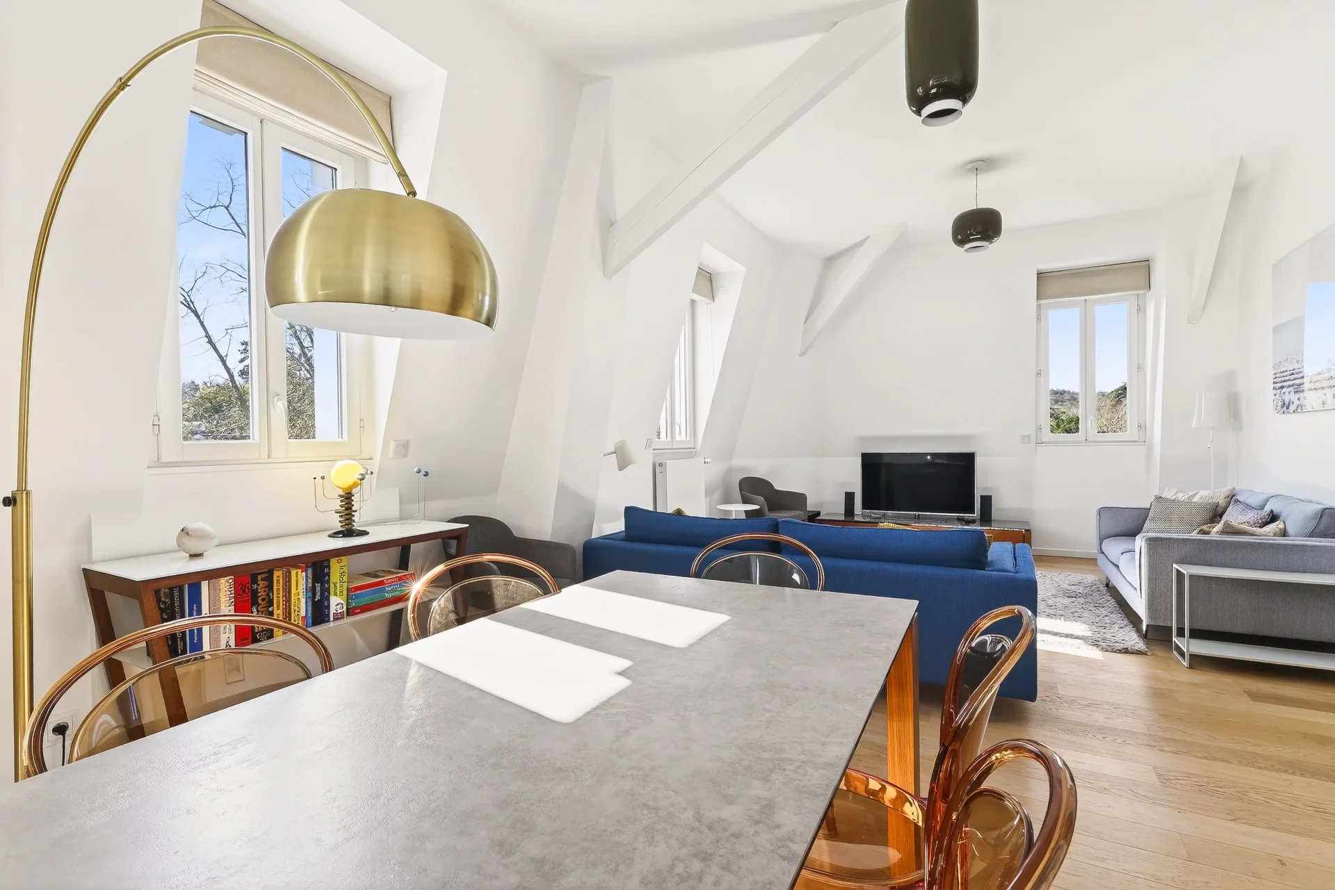 Within a charming character house, this beautiful 98.06 sqm apartment, located on the second floor, is charming for its superb ceiling height and refined atmosphere. It is situated in an exceptional green environment, in the heart of a confidential property enhanced by a magnificent 5,700 sqm wooded garden, a true haven of tranquility.