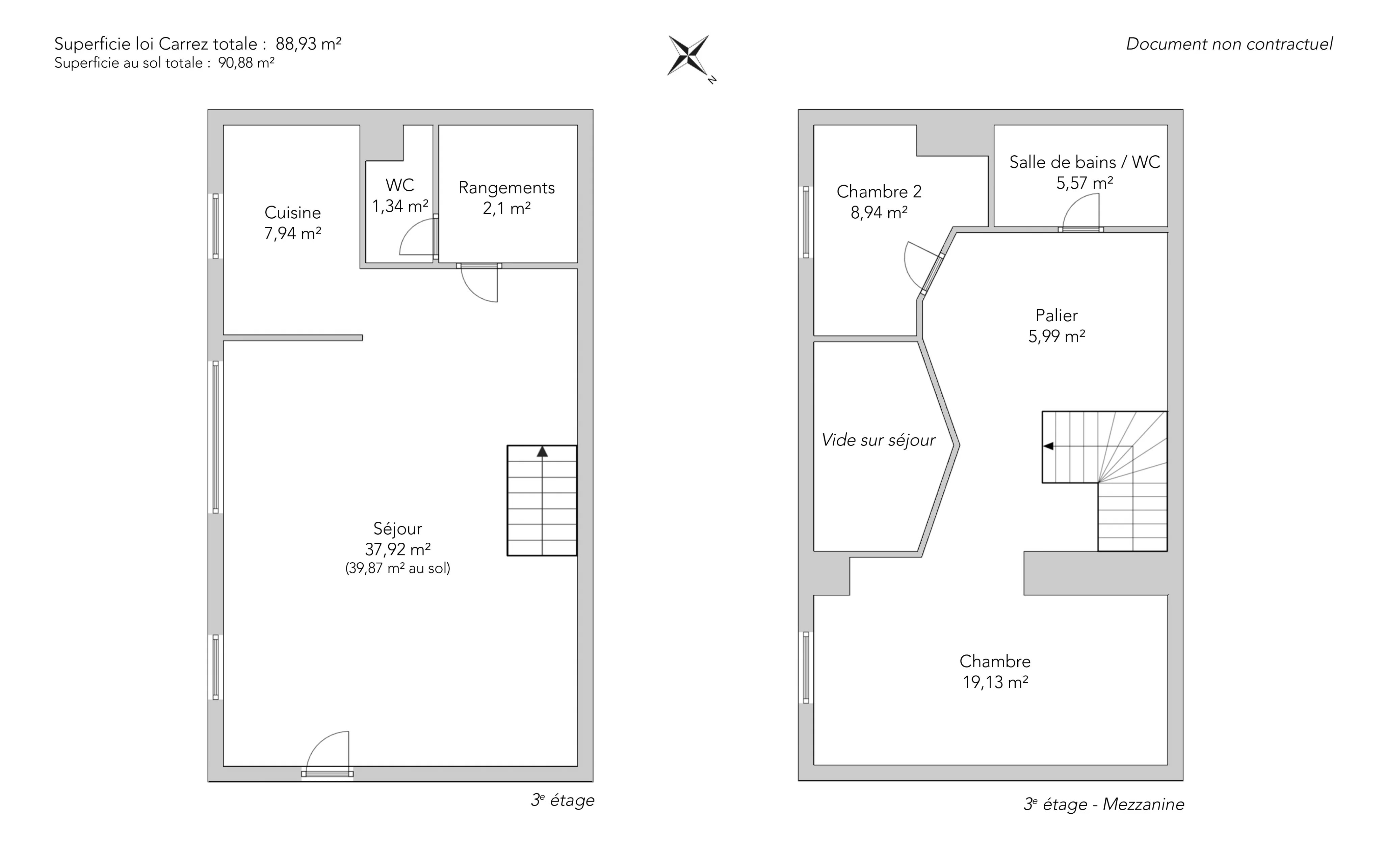 Rue du Cherche-Midi, near the Carrefour de la Croix-Rouge, on the third floor by staircase of an elegant old building, a duplex of 88.93sqm loi Carrez and 90.88sqm on the ground, with a workshop feel thanks to its generous glass roof.