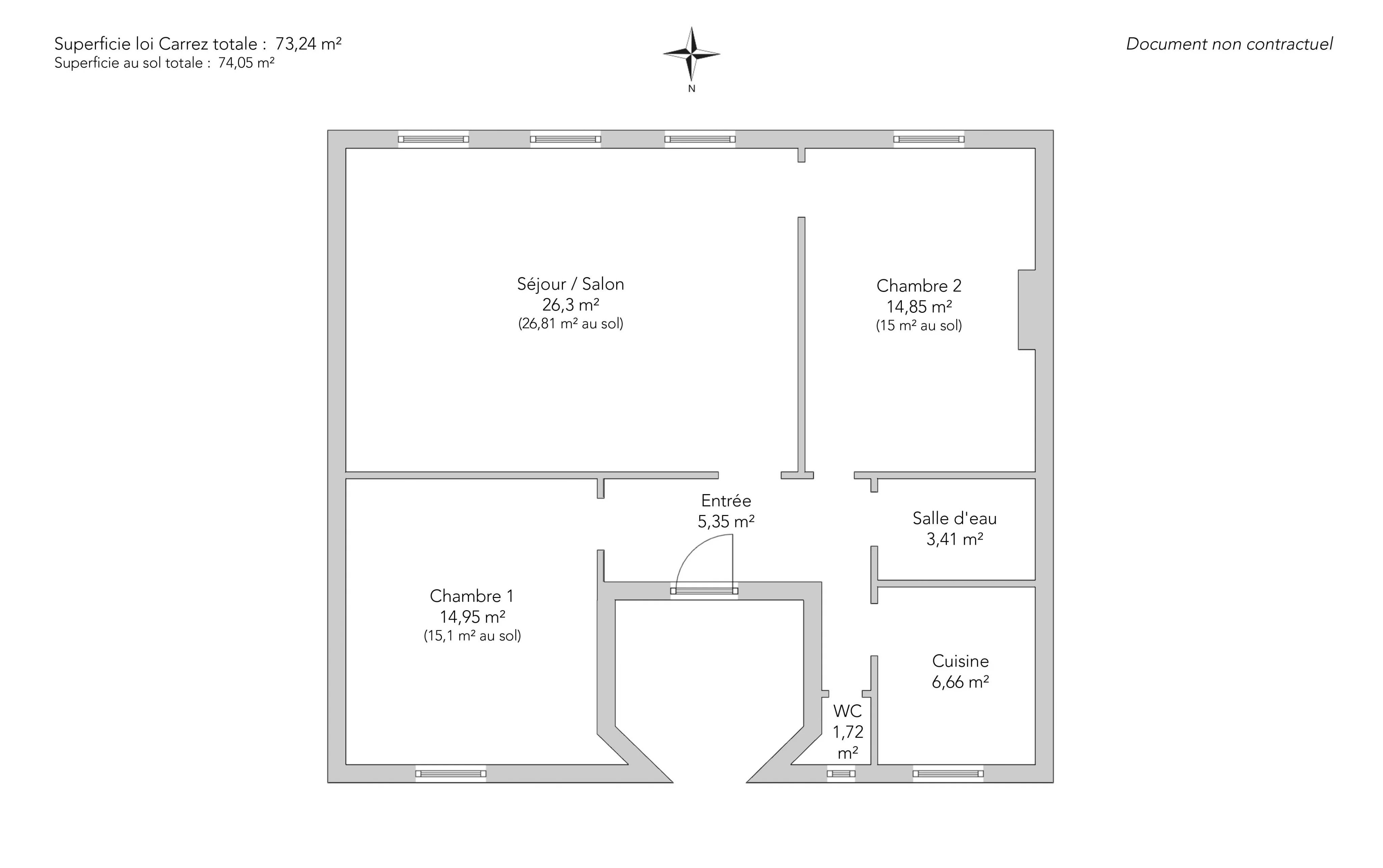 Nice crossing apartment of 73.74sqm Carrez law located on the first floor by elevator of a well-maintained building typical of the neighborhood.
