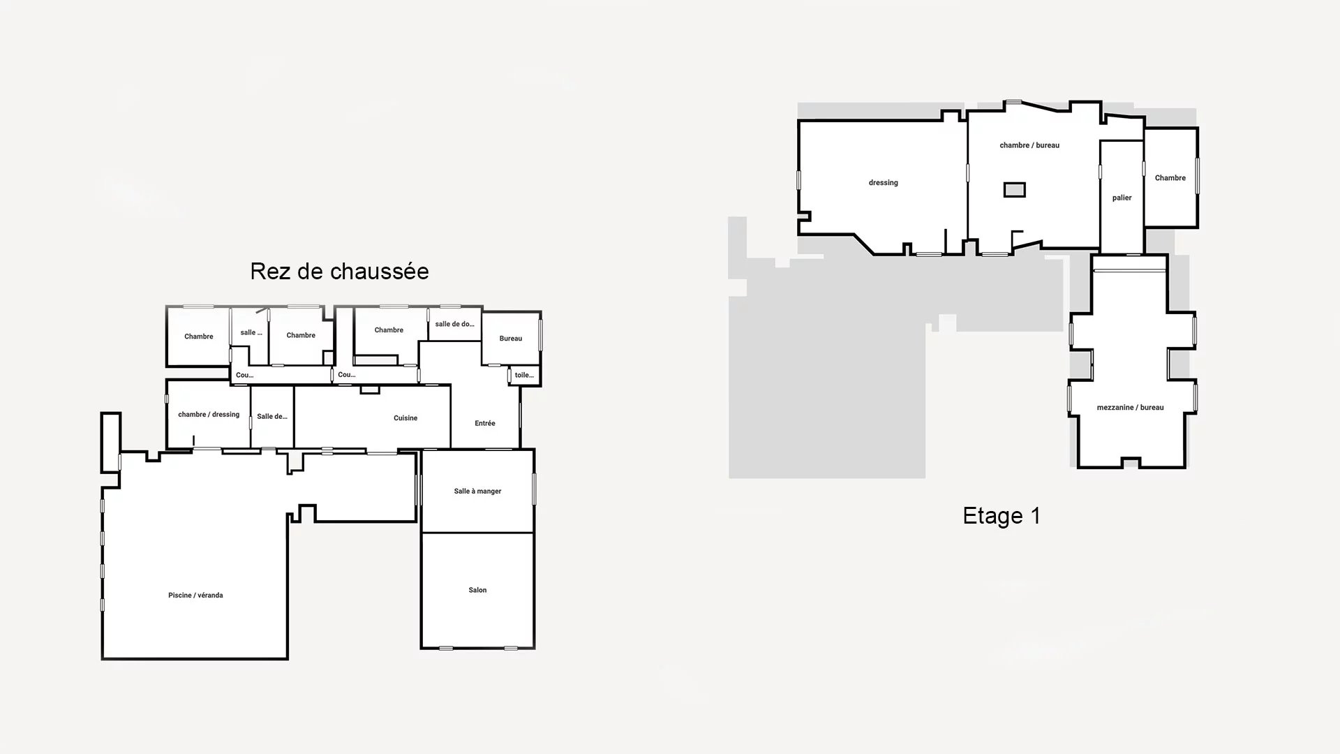 The visit begins with the entrance hall, which leads to a comfortable 60m² living room with gas fireplace, a large fitted kitchen and a bright adjoining veranda. These living areas open onto a south-facing terrace, out of sight. The tour of this level continues with three bedrooms, two shower rooms, a bathroom and an office. The first floor has more surprises in store: a dressing room leads to a huge indoor swimming pool and terrace, complete with sauna and shower room.