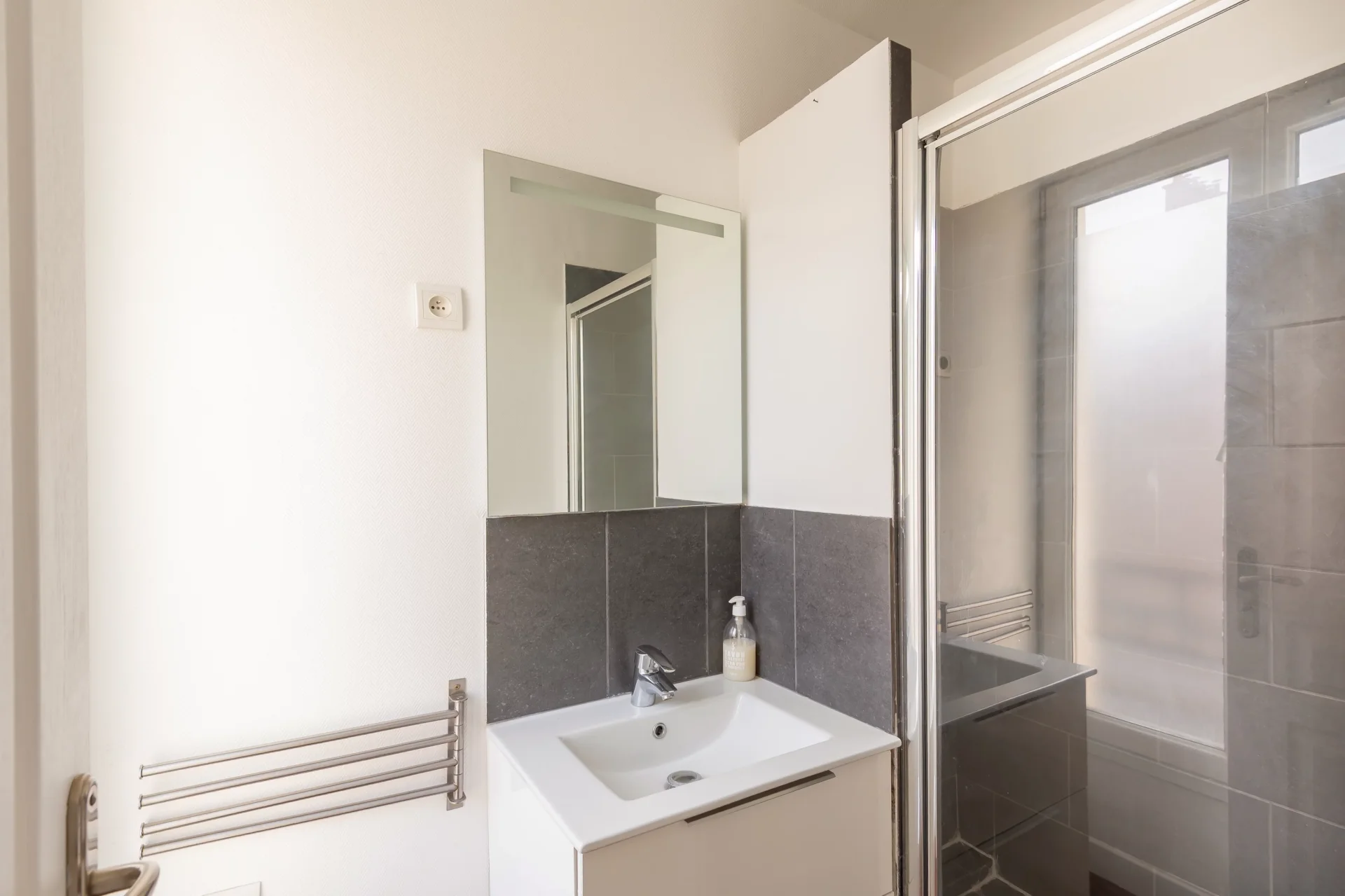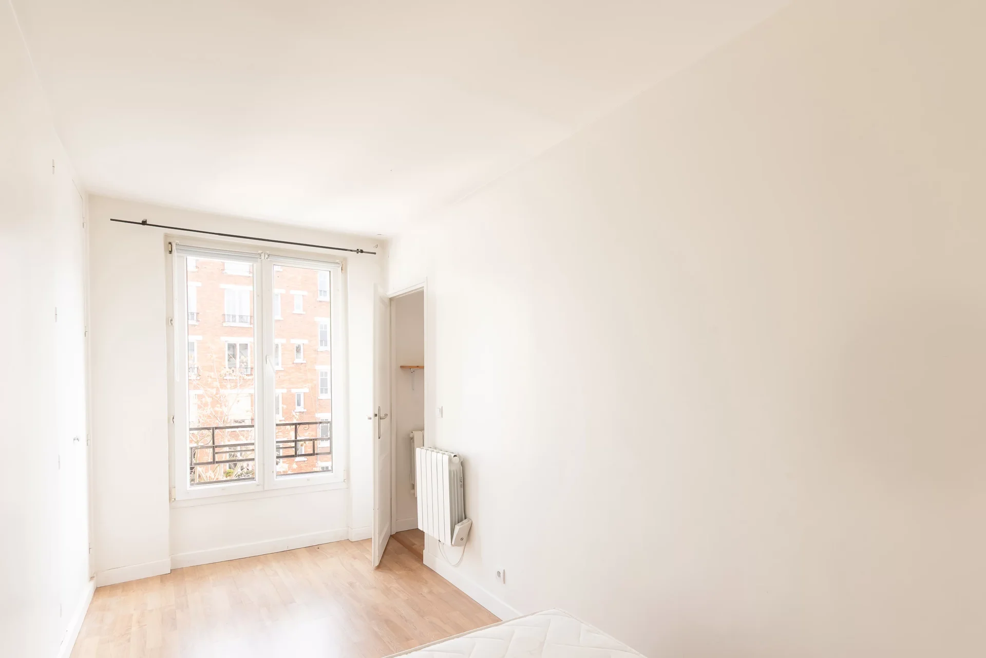 Near the Lamarck-Caulaincourt metro station, on the fourth and top floor by staircase of a well-maintained old building, this superb 28.32sqm Carrez law apartment benefits from unobstructed views over a pretty leafy courtyard.