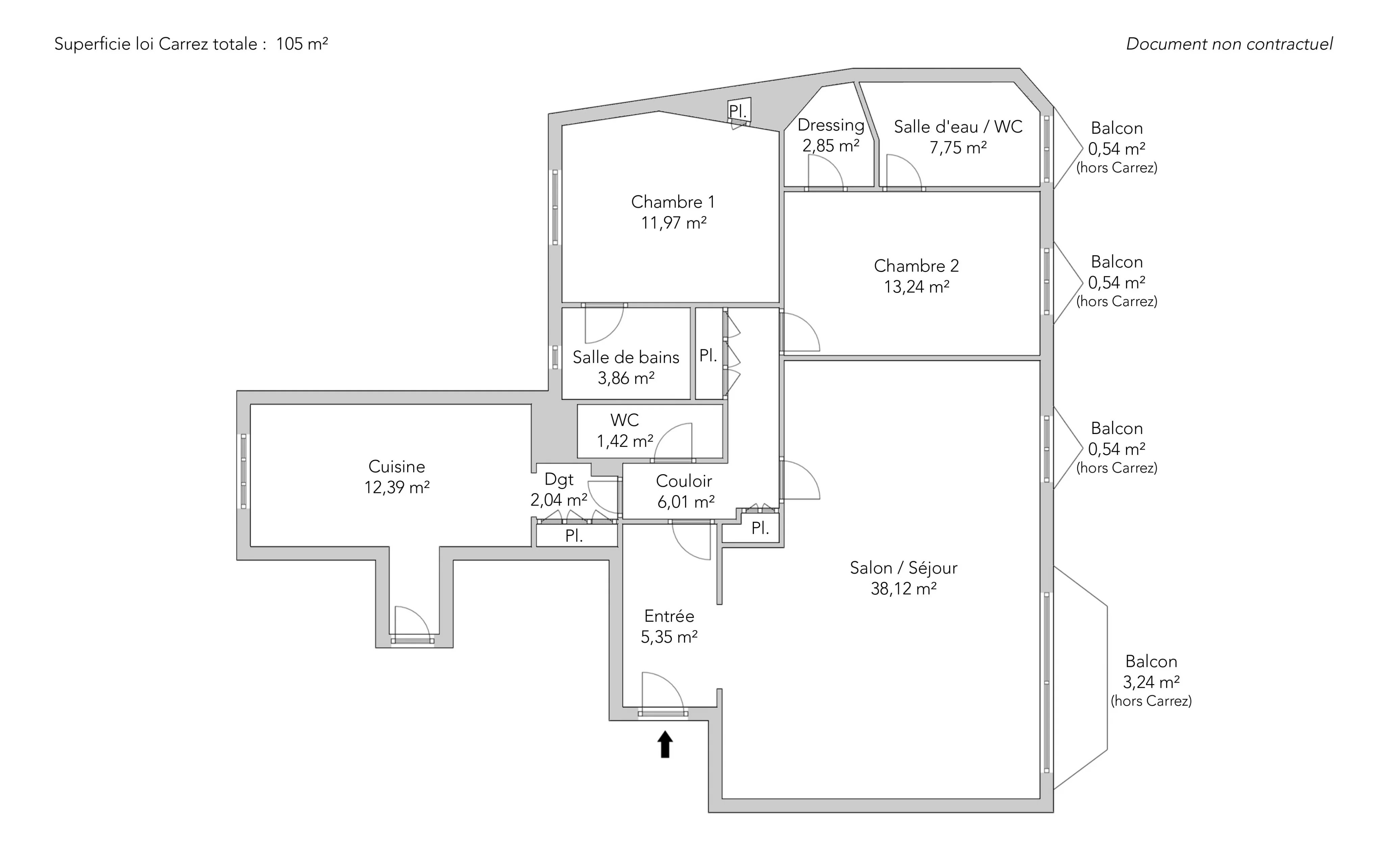 In the immediate vicinity of the Invalides, with a view of the dome, this 105sqm Carrez apartment is located on the third floor of a perfectly maintained recent building.