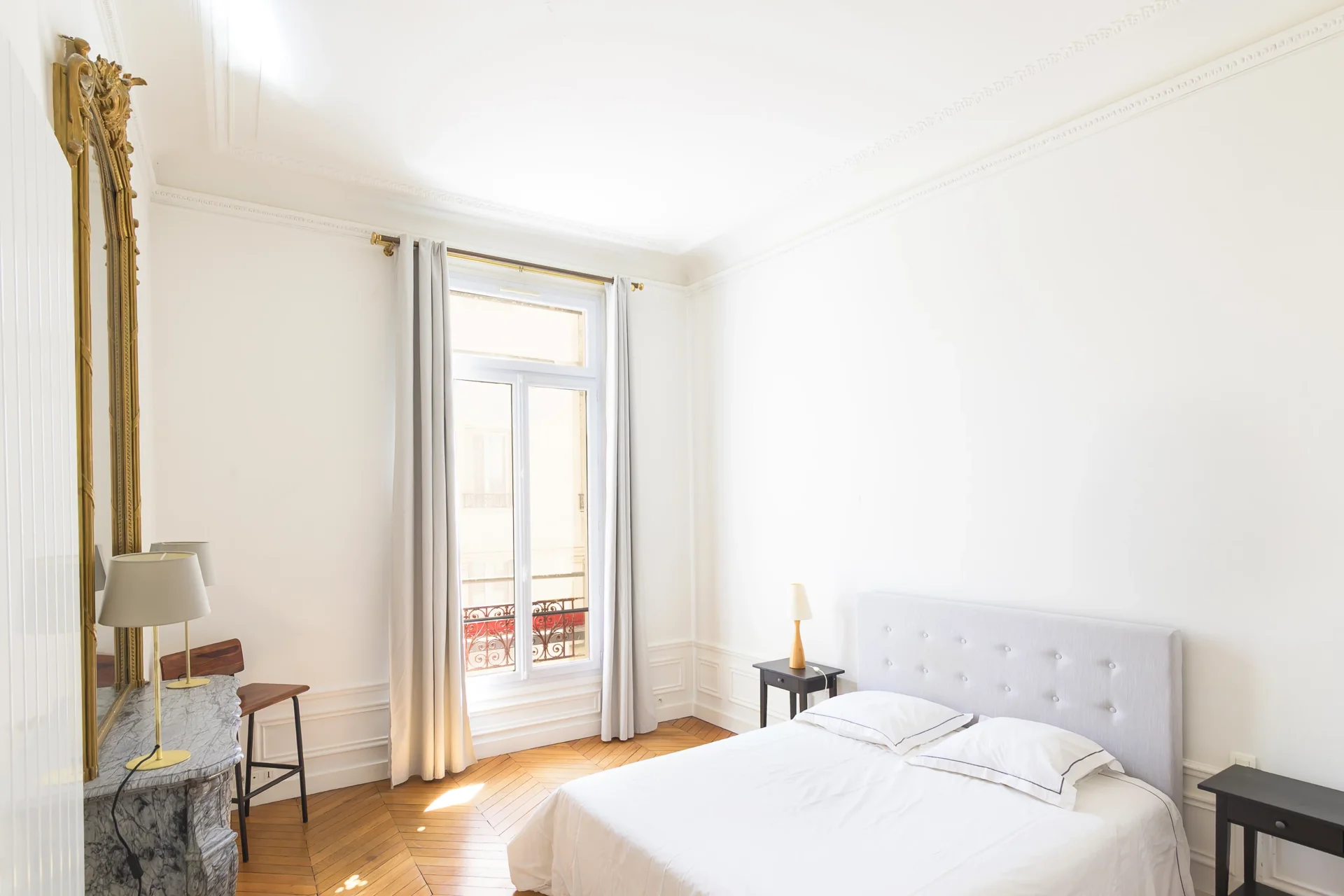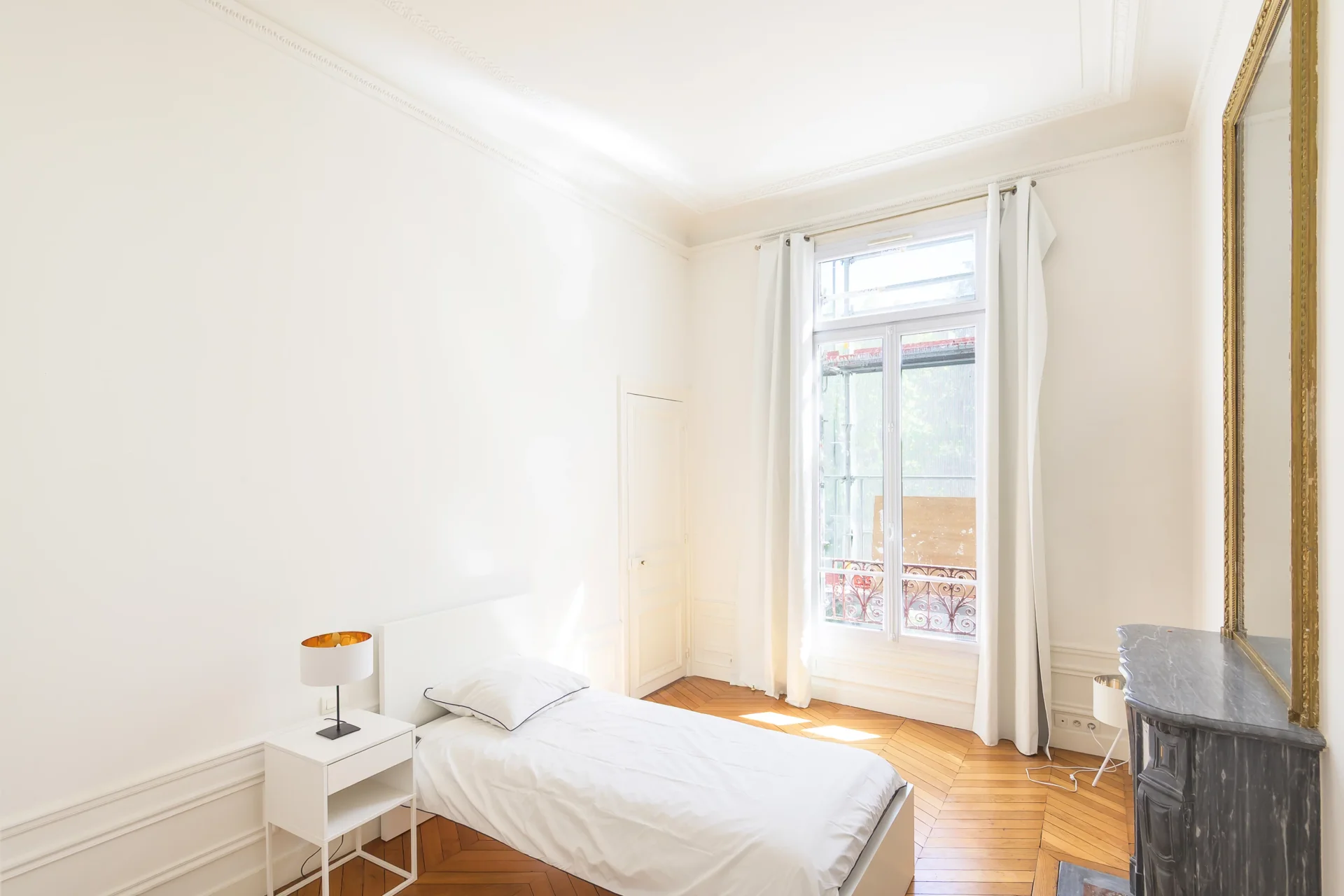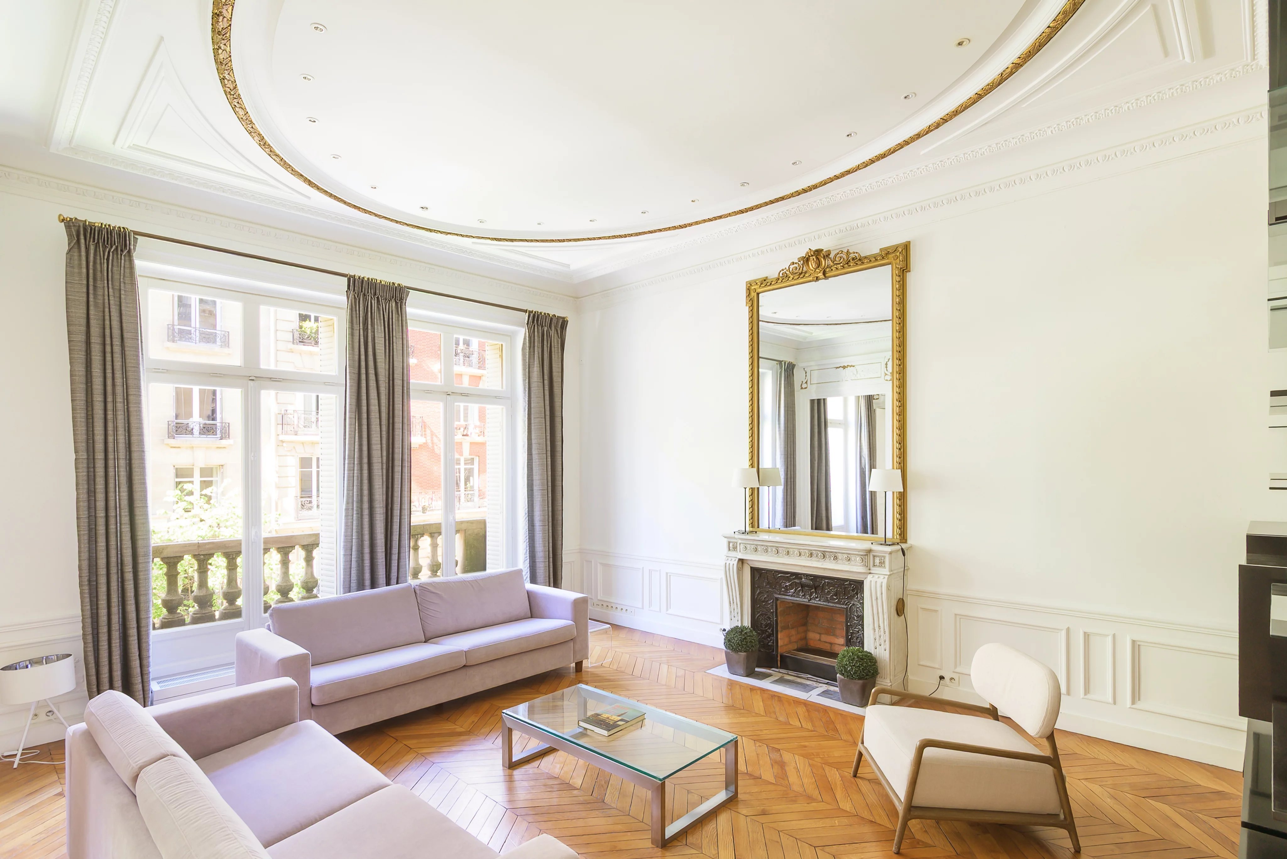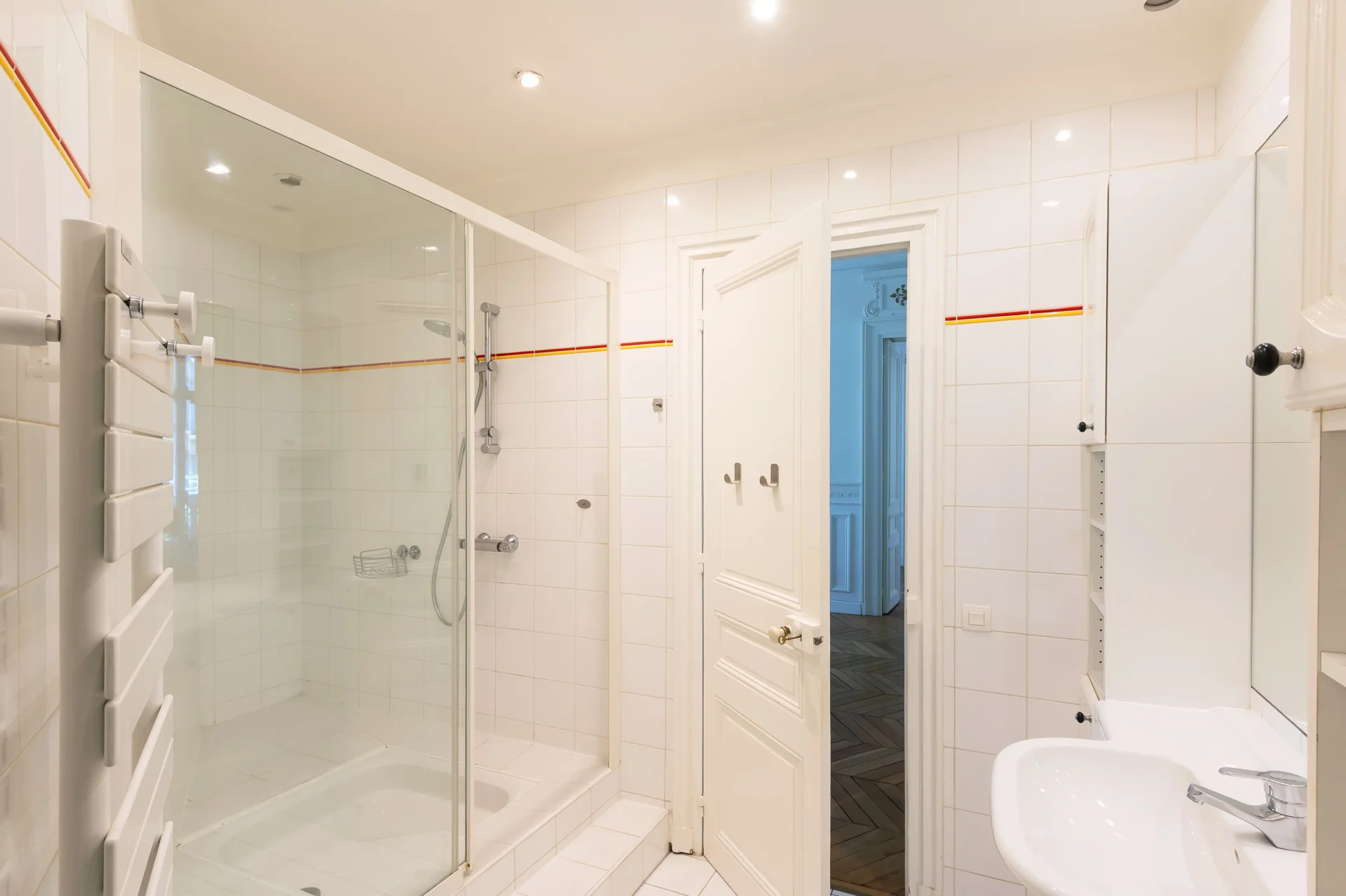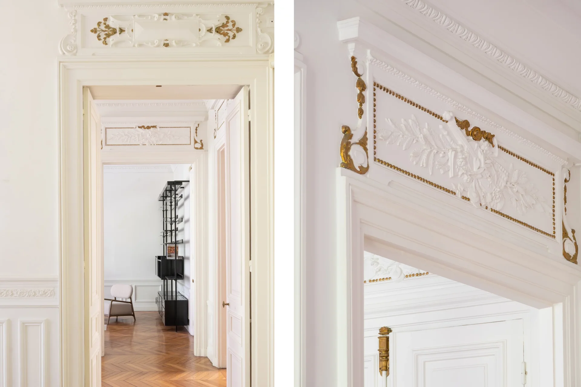 This apartment offers all the charm of old Paris with its beautiful volumes, ceiling height of 3.73 meters, Hungarian point parquet flooring, five marble fireplaces from the period, and elegant moldings.
