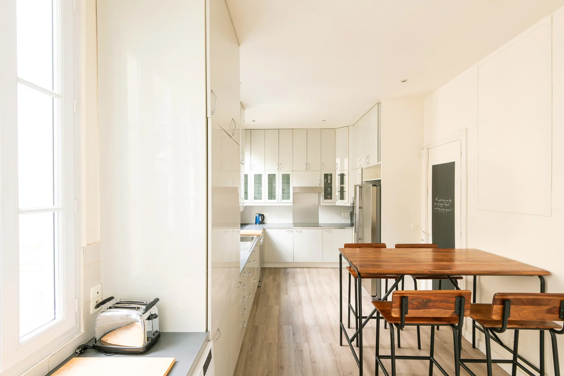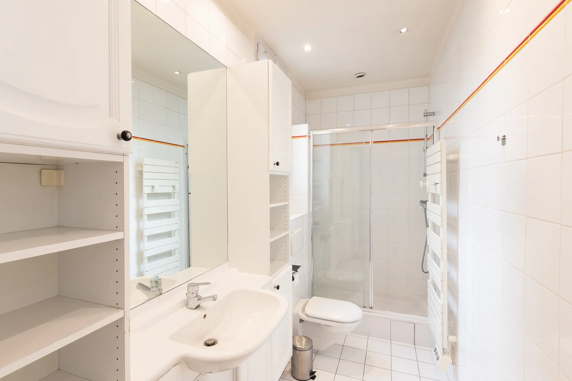 The apartment also offers an entrance wardrobe and many custom storage spaces.