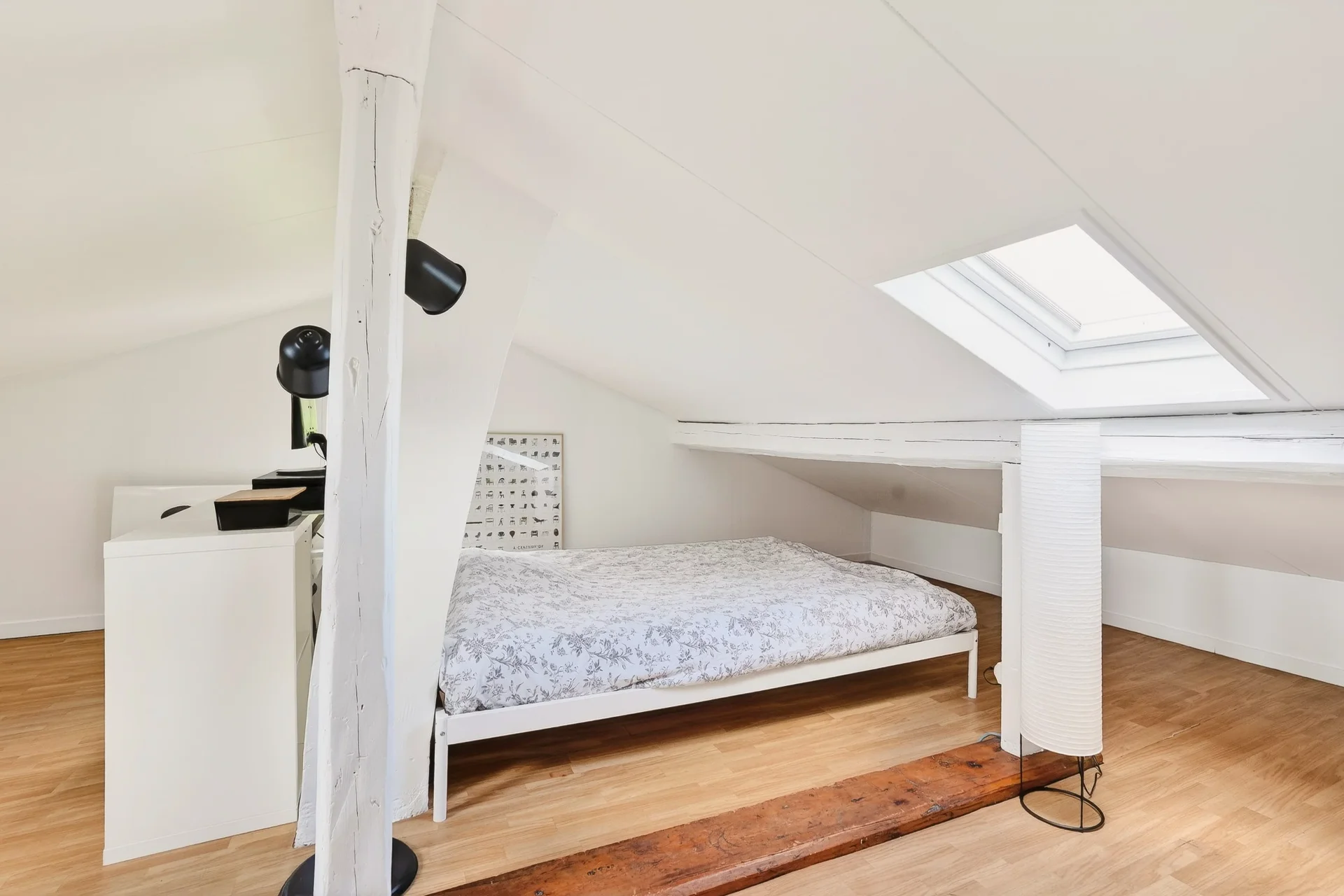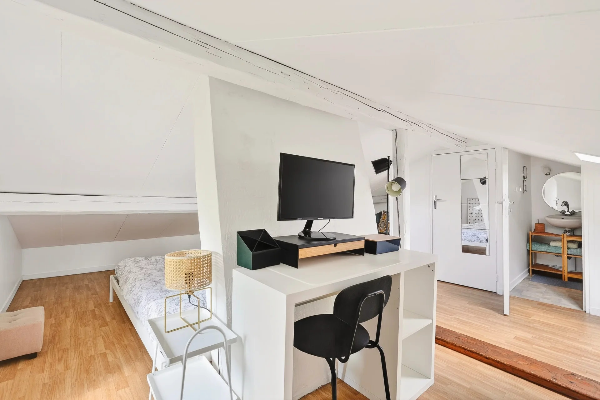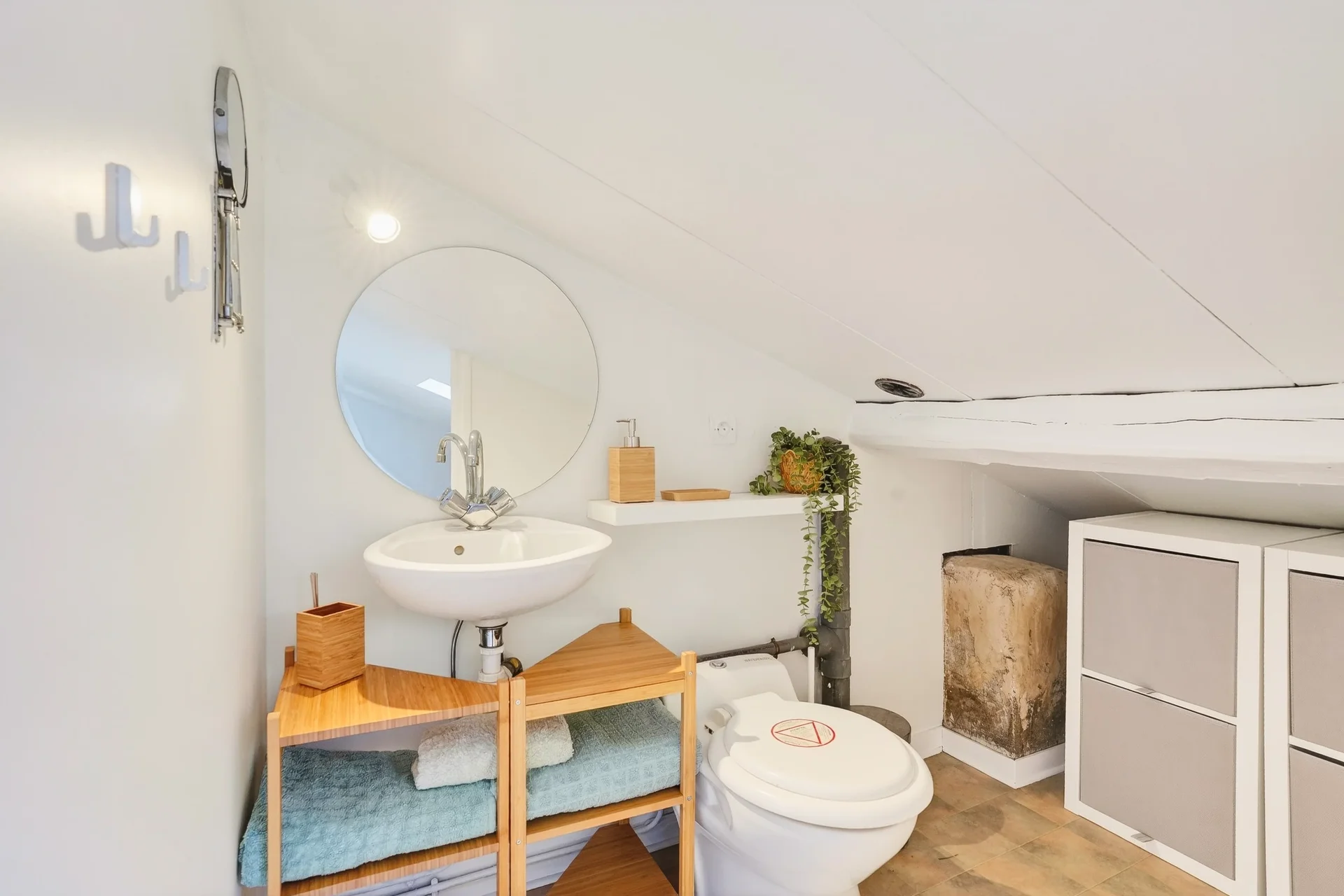 Les combles aménagés accueillent une pièce supplémentaire pouvant faire office de chambre, bureau ou salle de jeux, avec point d’eau et toilettes.