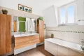 The first floor features a refined master suite, including an office and an adjacent shower room, as well as a second bedroom. Many custom wardrobes and storage spaces complete this level.