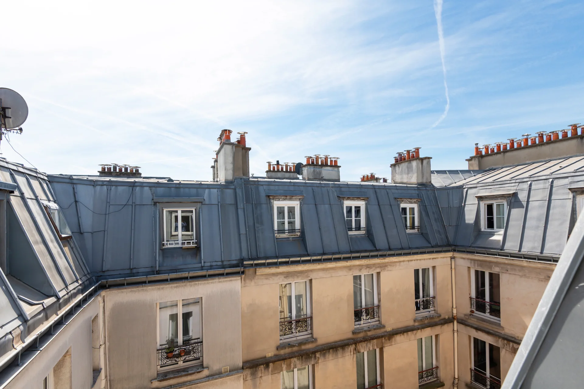 Close to shops and transport, on the sixth and top floor accessed by stairs of a well-maintained old building, apartment of 47.56sqm and 50.87sqm living area currently renovated by an architect.