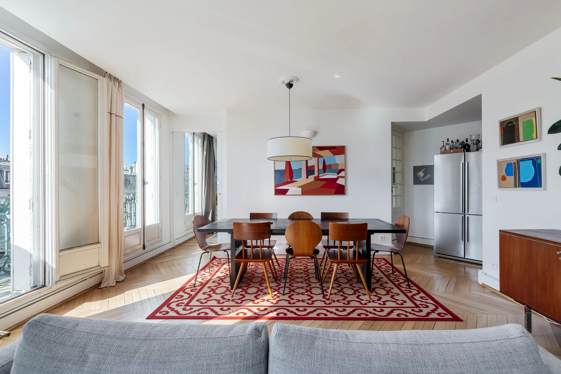 Quartier Simplon / Jules Joffrin au pied des commerces et des transports. Au cinquième étage par ascenseur d'un bel immeuble haussmannien, magnifique appartement familial de 105,34m² loi Carrez baigné de soleil et offrant de superbes vues dégagées.