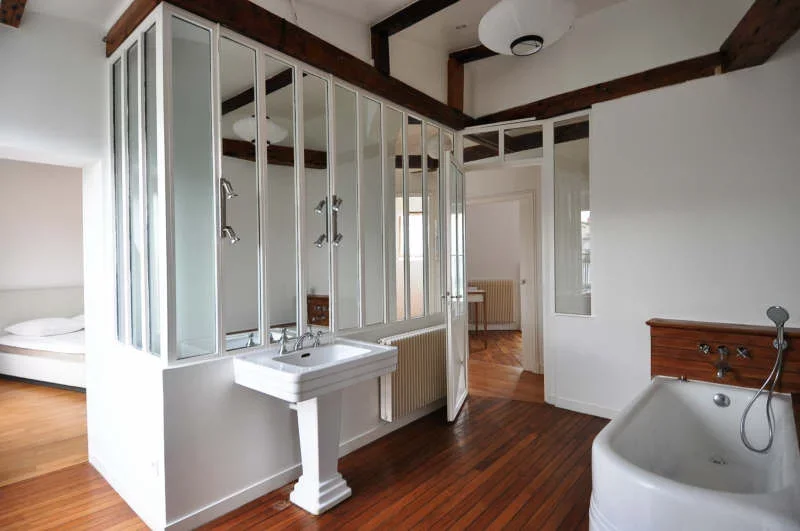 Au cinquième et dernier étage avec ascenseur d'un joli immeuble d'angle en pierre de taille sécurisé et bien entretenu.