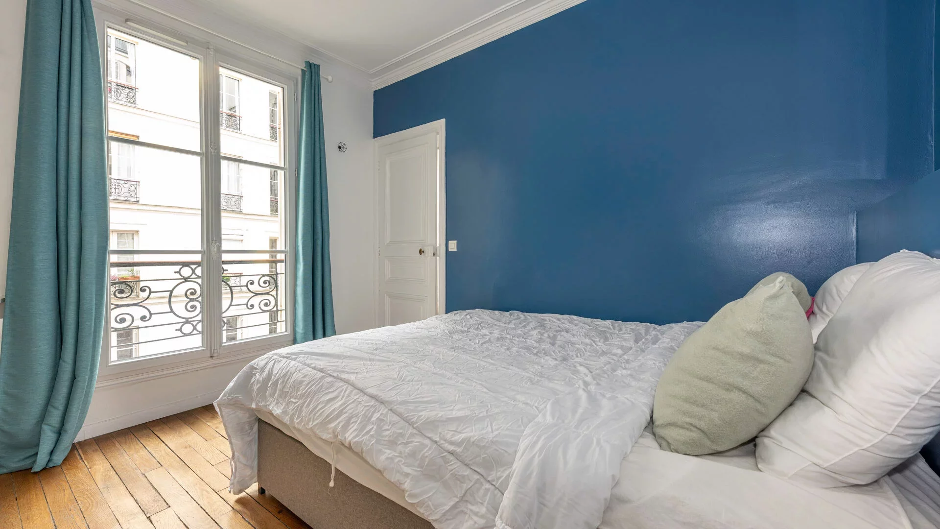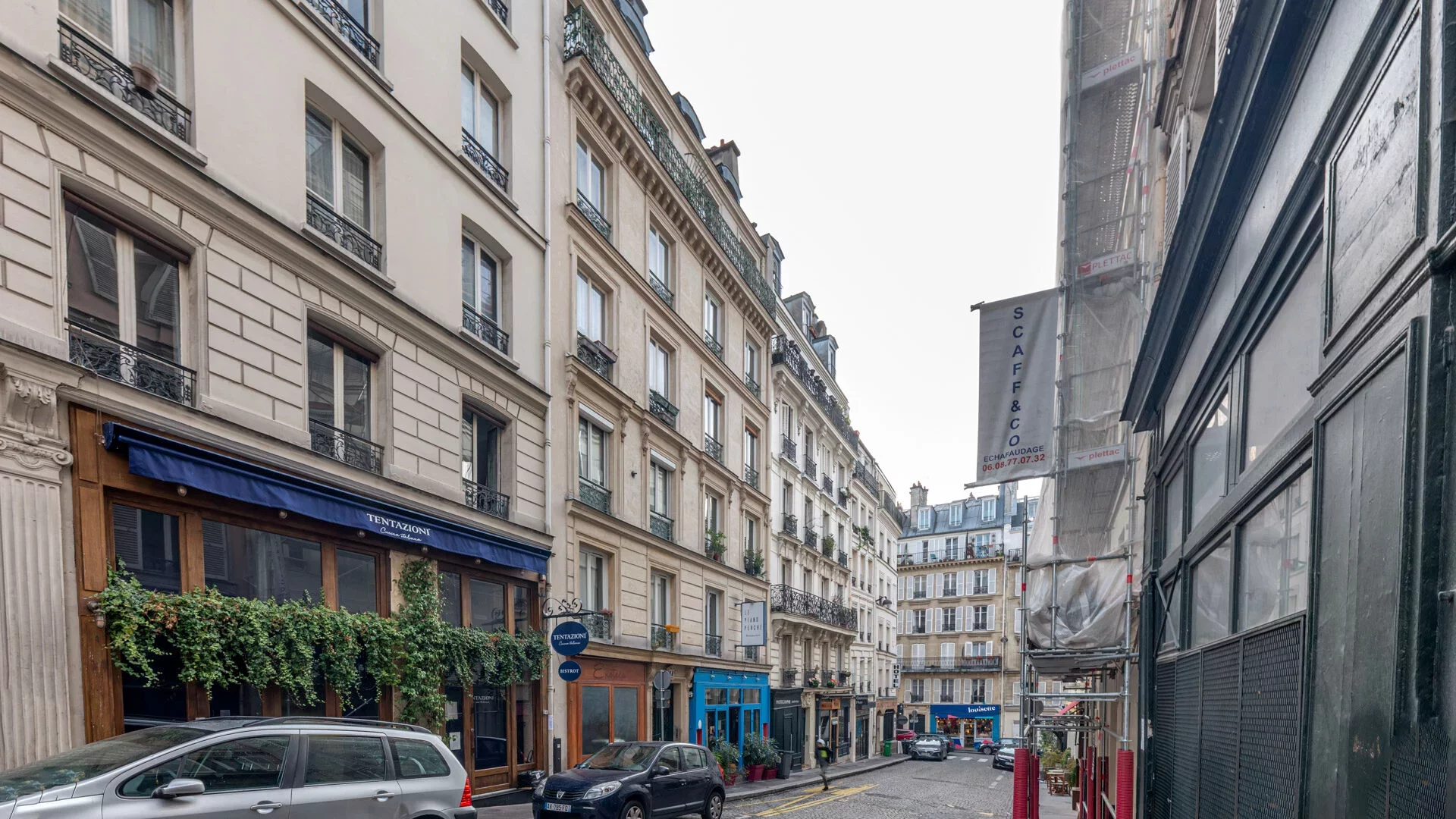 Situé dans une jolie rue en plein cœur des Abbesses, à proximité de tous les commerces mais en retrait de l'agitation : rue Aristide Bruant.