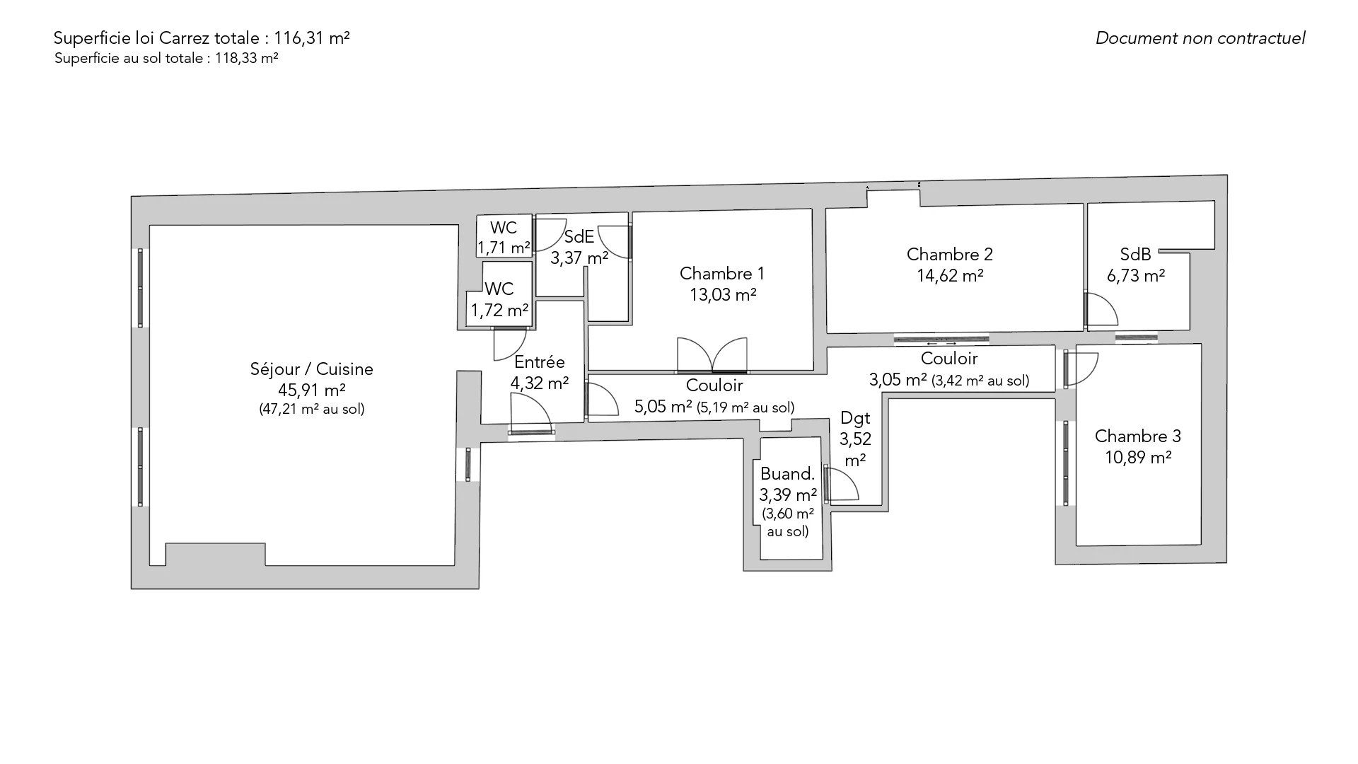- Habitable : 116,31 m² Total : 118,33 m²
