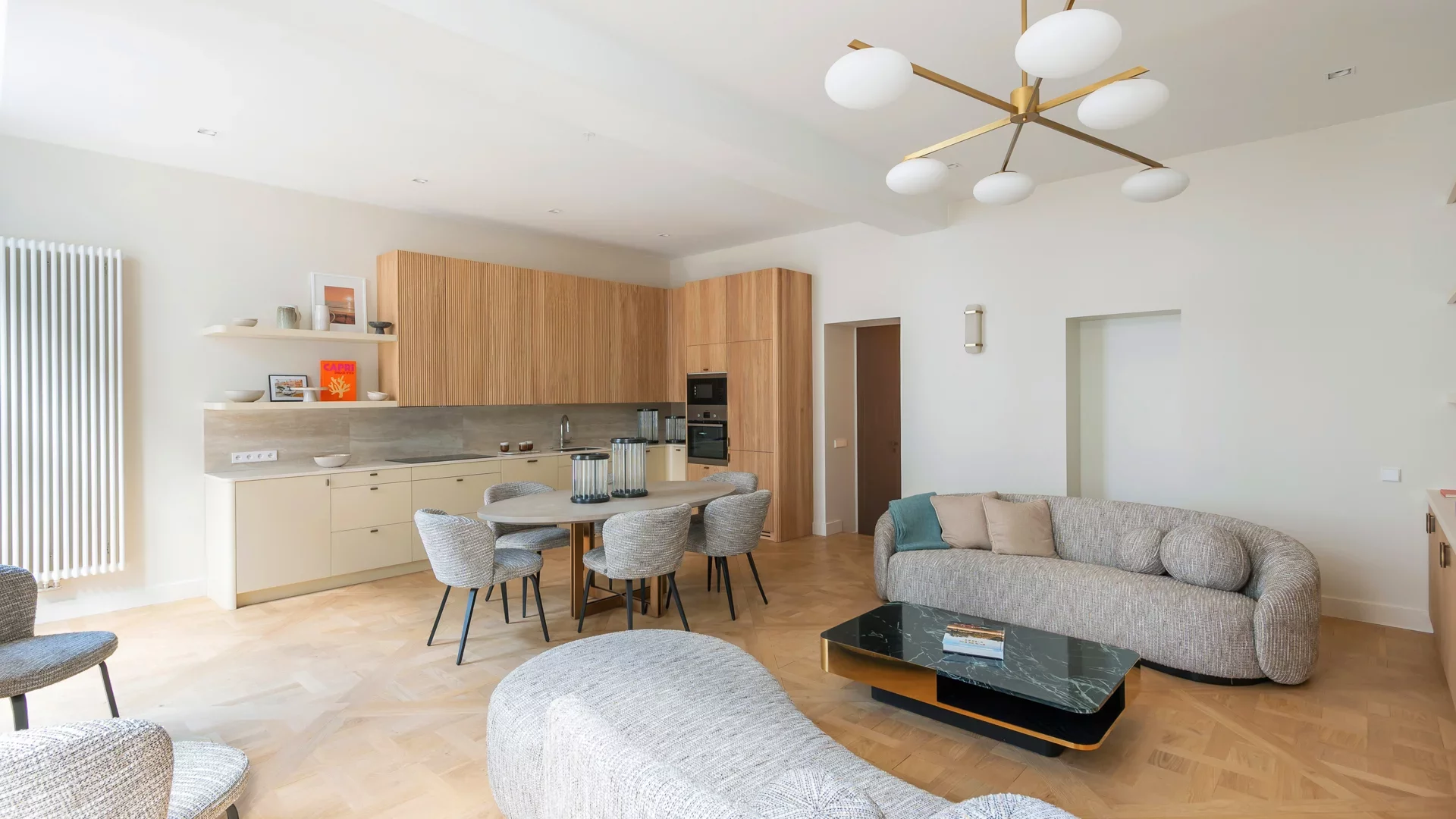 Carré des Antiquaires. Dans un bel immeuble ancien de la rue de l'Université, au deuxième étage, un appartement en parfait état de 116,31m² loi Carrez (118,33m² au sol). Seul sur le palier, il se compose d'une entrée avec vestiaire, d'une vaste pièce à vivre exposée au sud, avec cuisine ouverte entièrement équipée, de trois chambres au calme absolu avec rangements, d'une salle de douche avec toilettes, d'une salle de bains complète avec toilettes, d'une buanderie et de toilettes invités. En annexe: une cave. Cet appartement aux sublimes volumes bénéficie d'une rénovation de grande qualité, d'une très belle hauteur sous plafond et d'un emplacement prestigieux. Rare.