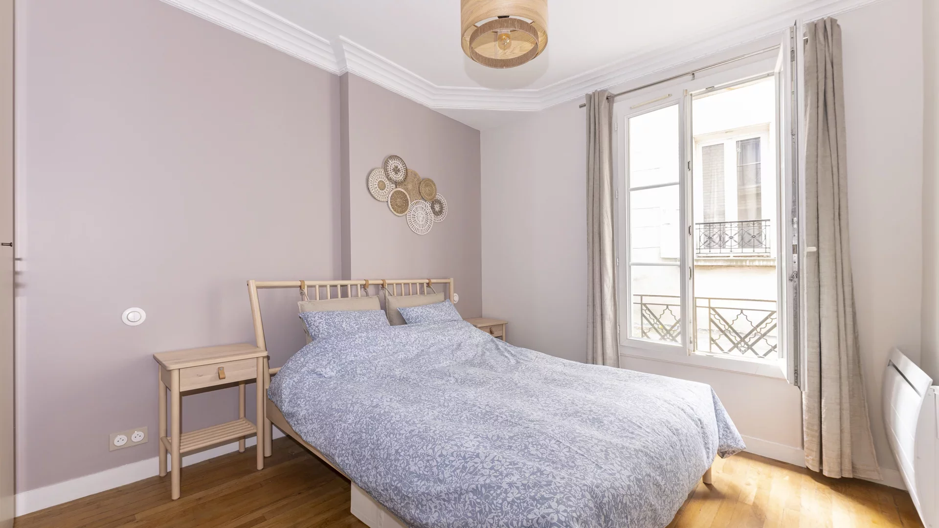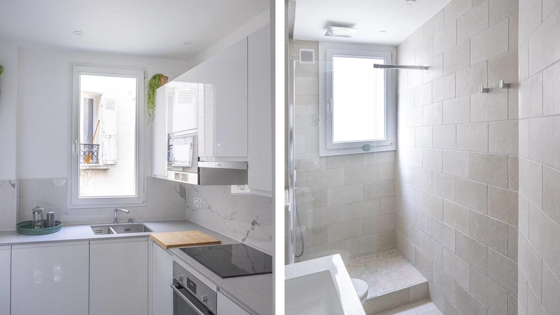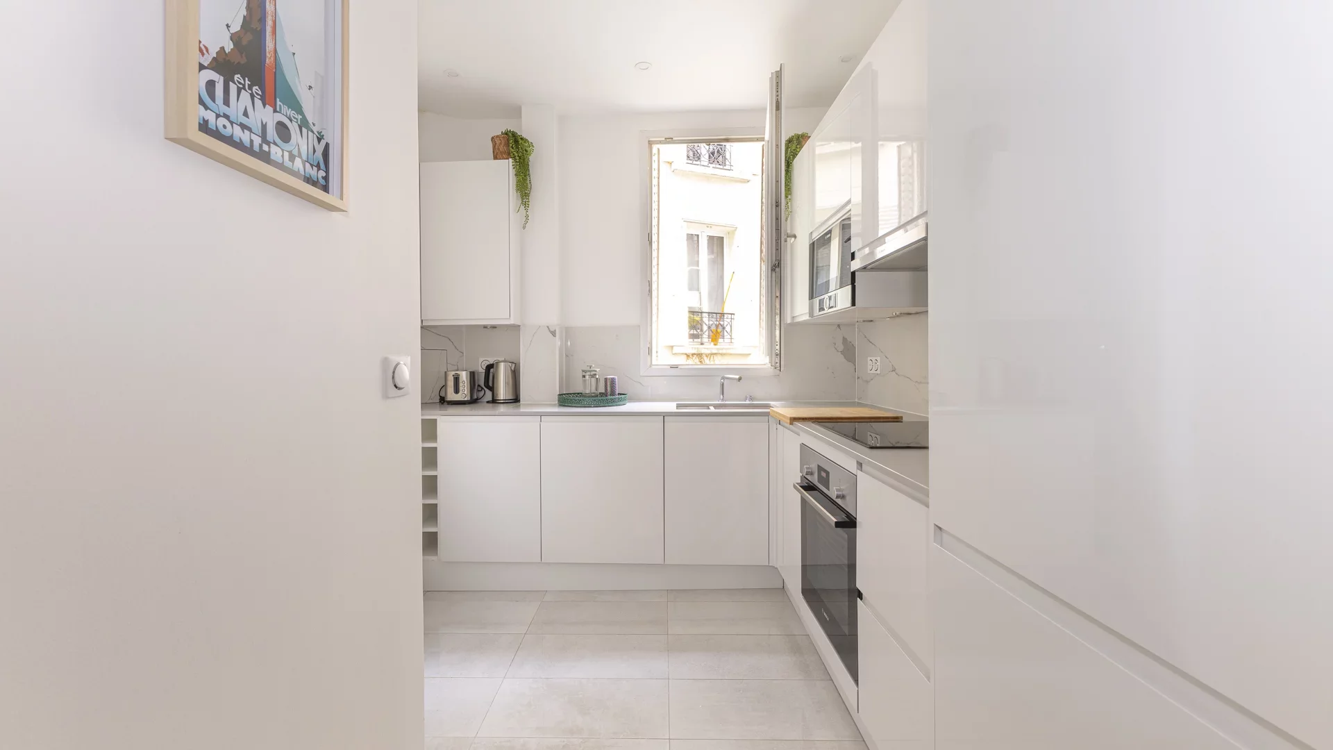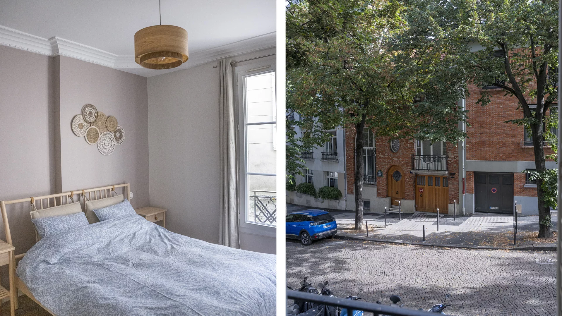 Il comporte un séjour avec une vue dégagée sur l'avenue Junot, une cuisine indépendante aménagée et équipée, une chambre, une salle de douche, des toilettes séparées ainsi que de nombreux rangements intégrés. Pas de colocation.