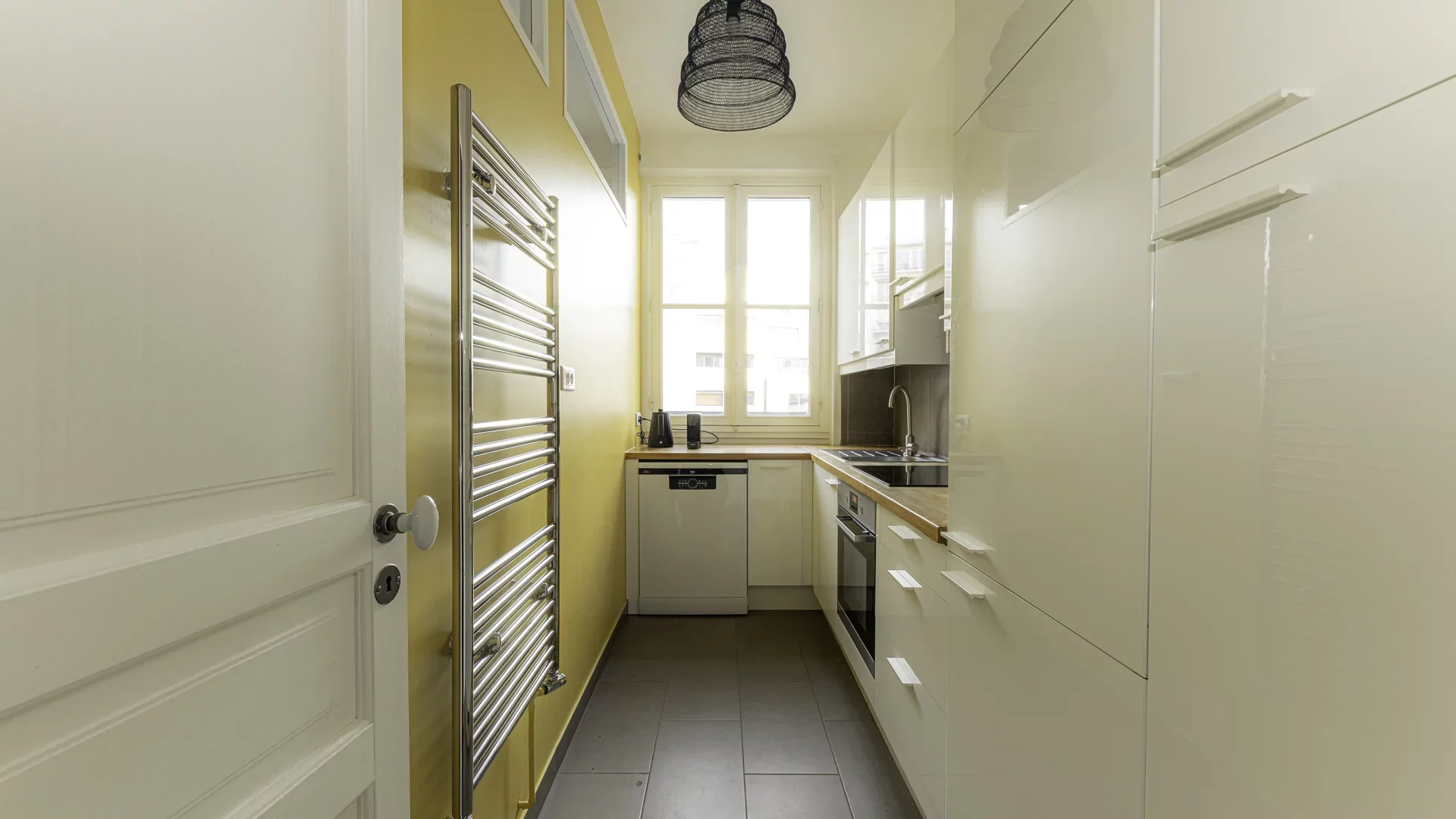 Au troisième étage par ascenseur d'un immeuble haussmannien, ce joli quatre pièces meublé de 84,65m² loi Carrez, se compose d'une entrée, une cuisine séparée, une salle à manger, un séjour, deux chambres spacieuses avec rangements et d'une salle de bains avec toilettes.