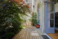 Ce bien entièrement rénové en 2022 par architecte et climatisé comprend, au rez-de-jardin, une entrée avec un spacieux double séjour doté d'une remarquable hauteur sous plafond de 5,38m et de trois grandes portes-fenêtres qui donnent accès à la terrasse exposée plein ouest, un espace bureau, une buanderie, des toilettes invités et de nombreux rangements.