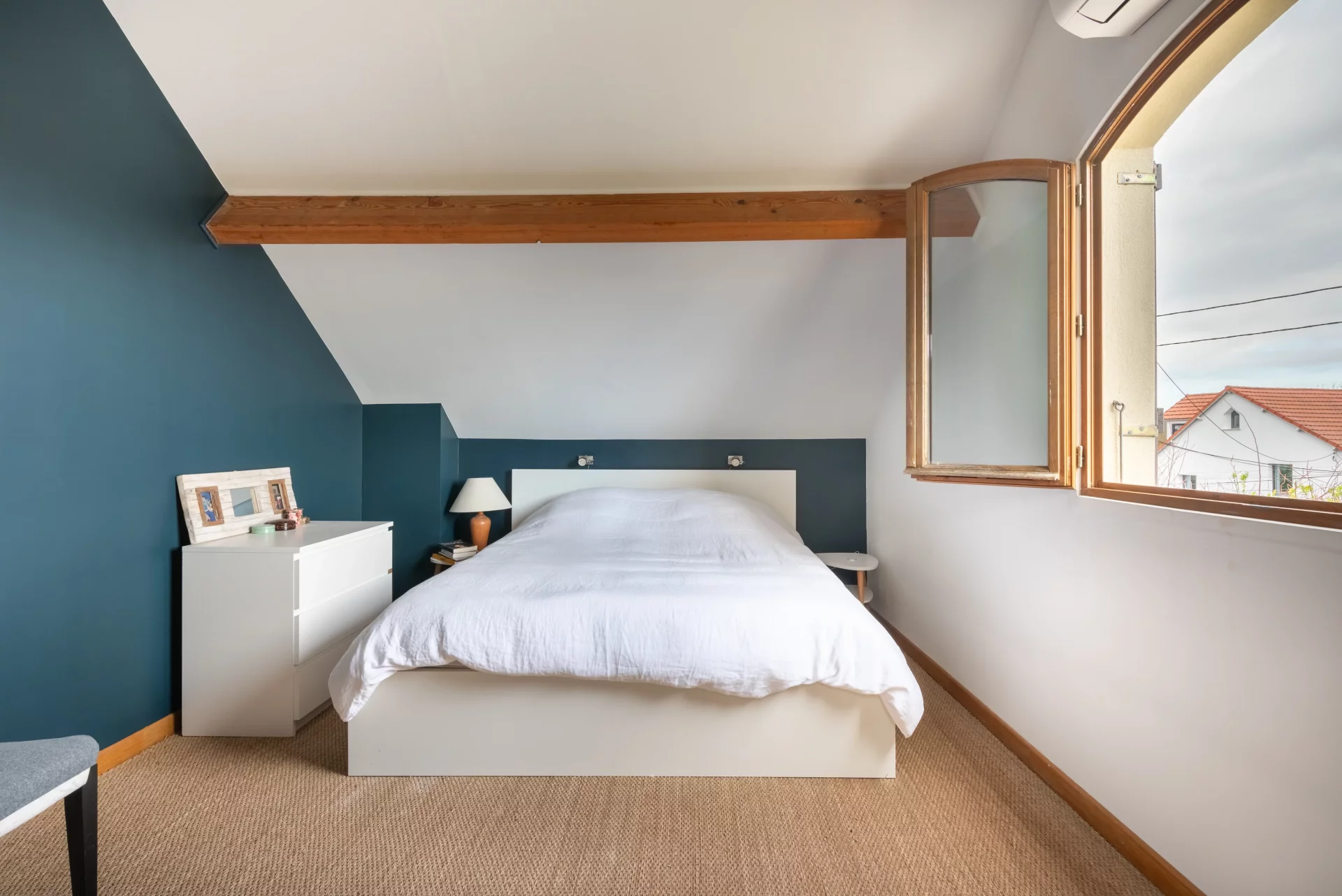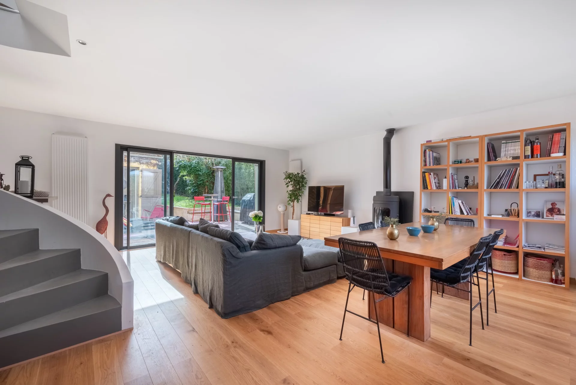 Idéalement située à proximité d'écoles réputées et dans un environnement paisible, cette ravissante maison de 148.44m², en excellent état, repose sur une parcelle arborée de 412m².