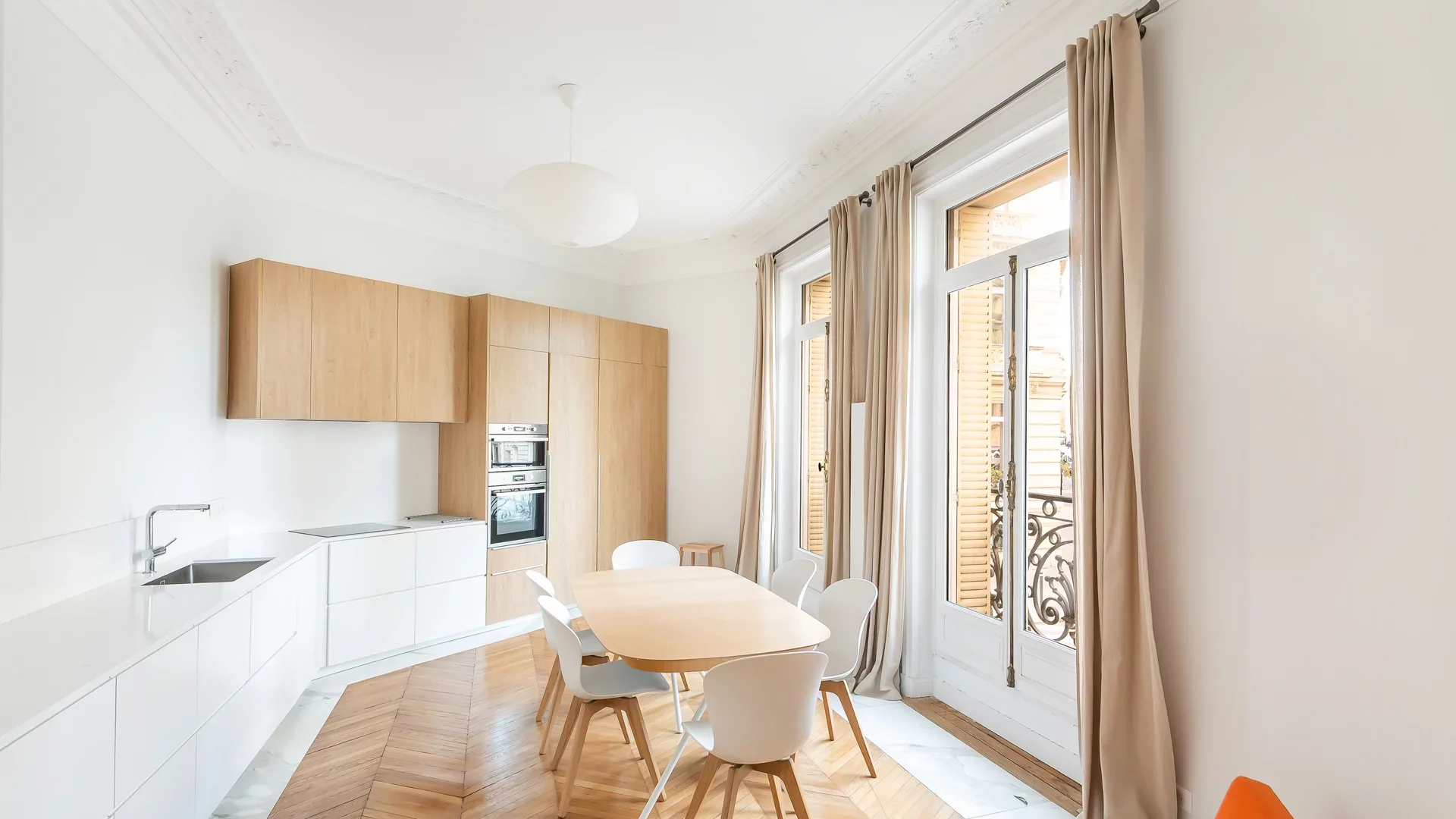 Idéalement situé à deux pas de la place d'Iéna, c'est au premier étage d'un magnifique immeuble haussmannien que se trouve ce majestueux appartement d'angle.