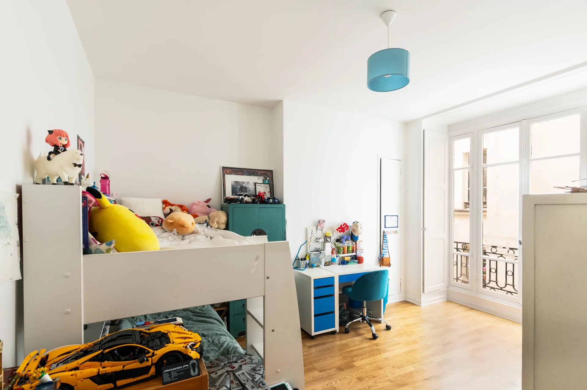 Il se compose d’une entrée desservant un double séjour lumineux de 45m², d’une cuisine indépendante entièrement équipée, de trois chambres, dont une suite parentale avec salle de bains et toilettes, ainsi que deux autres chambres au calme sur cour, et une salle de douche avec toilettes.