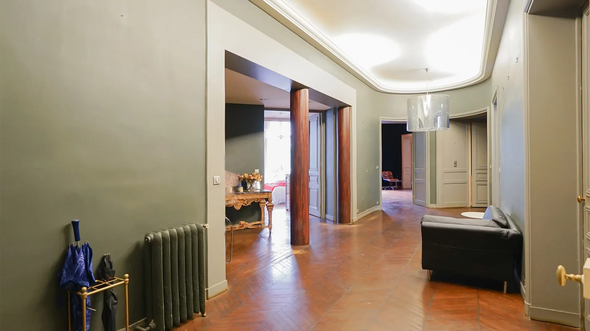 Idéalement situé, à l'abri des regards, adresse prestigieuse avec un accès privé directement au jardin de 305m² orienté plein sud-est. Au sein d'un magnifique immeuble ancien en pierre de taille, élégant appartement familial de 304,38m² loi Carrez et 372,30m² au sol ouvrant sur un sublime jardin de 305m².