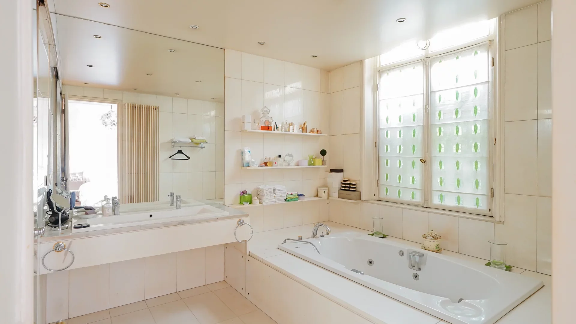 Côté nuit, une vaste suite parentale avec dressings, salle de bains avec douche et toilette, ainsi que trois belles chambres toutes dotées d’une salle de bains avec toilettes également. L'appartement bénéficie de très beaux volumes, d’une belle hauteur sous plafond avec 3,57m et du charme ancien (cheminées et moulures). Au sous-sol, une piscine, un sauna, une buanderie, une salle de douche et un toilette. Ce bien rare bénéficie d'un environnement calme et verdoyant tout en étant à proximité immédiate des commerces et transports. Sentiment d'être dans une maison à la campagne. Une grande cave complète ce bien. Gardien à demeure. Sectorisation Janson de Sailly.