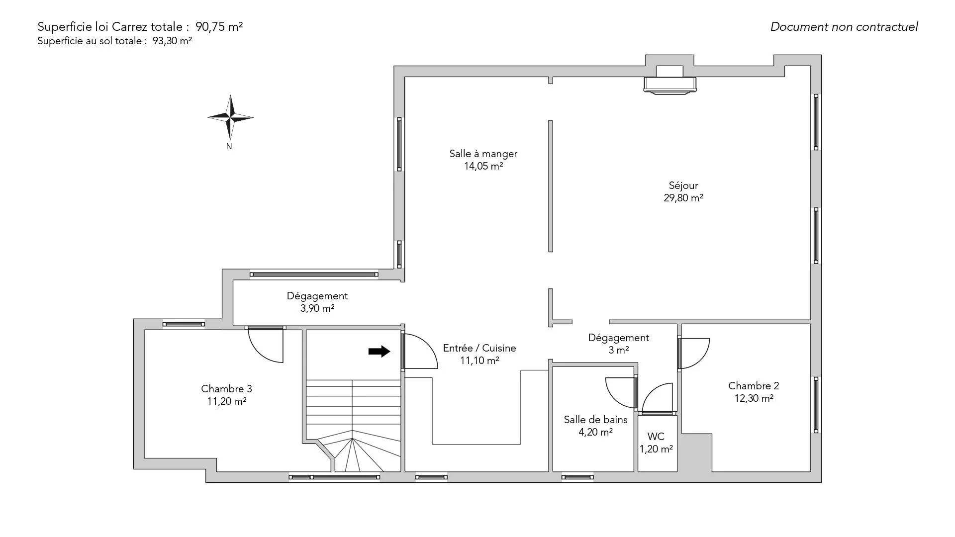 - Habitable : 90,75 m² Total : 93,30 m²