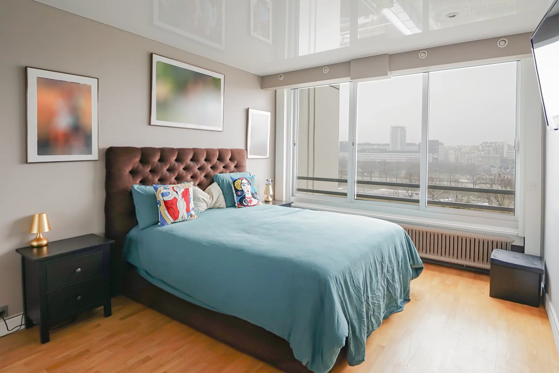 Au cœur du quartier Beaugrenelle, au septième étage par ascenseur de la tour Avant Seine, un bel appartement familial de 108,82m² loi Carrez.