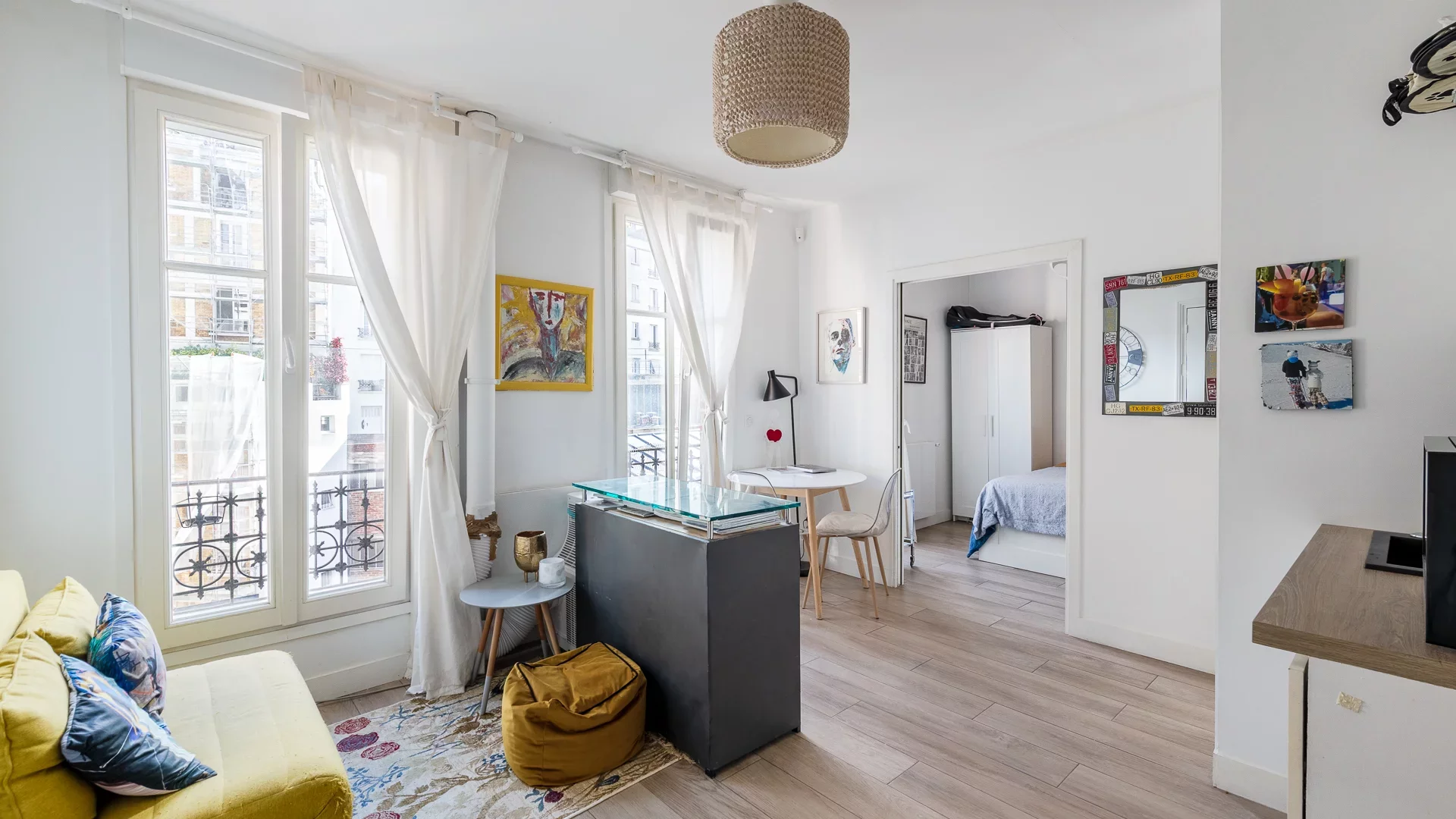Au cœur du quartier prisé de Montmartre, à deux pas des commerces et des transports et de l'avenue Junot, magnifique duplex au sein d'un immeuble bien entretenu.