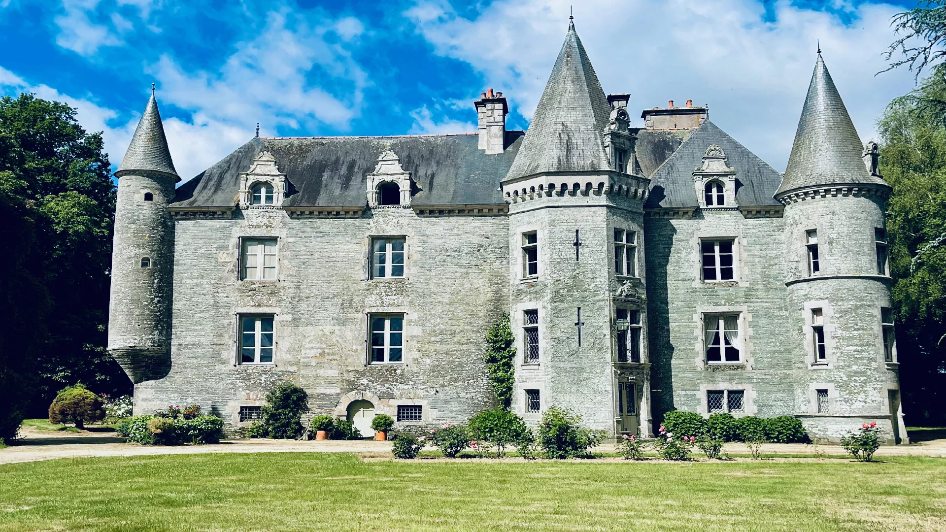 Construit en schiste, granit et pierre de taille, l’édifice s’élève sur trois niveaux et comprend 17 pièces, dont 12 chambres. Son architecture raffinée, marquée par un escalier en fer à cheval, reflète une harmonie entre les styles de ses époques de construction et de rénovation. Une tour en pierre, datant également du XVIe siècle, lui fait face et renforce le caractère historique de l’ensemble.