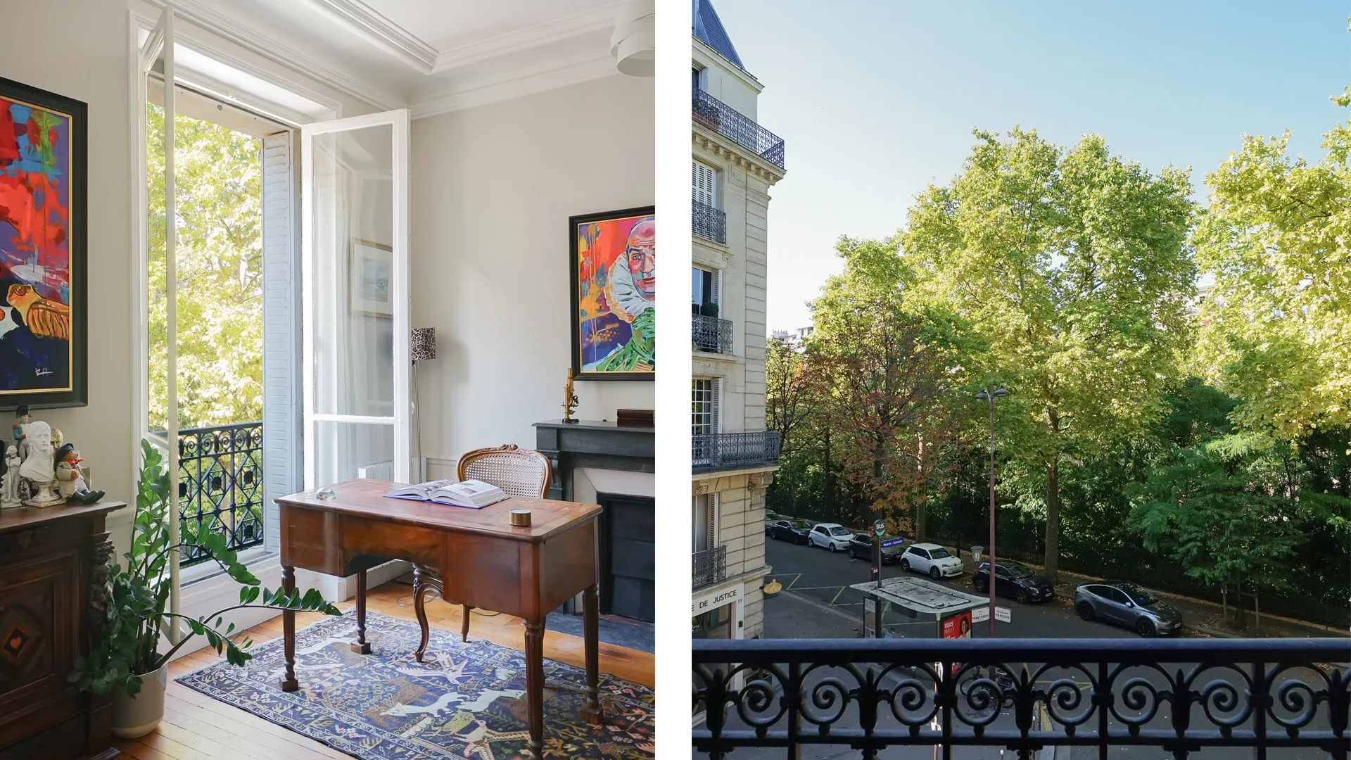 Il se compose d'une entrée, d'un double séjour de 25m² donnant sur un agréable balcon aux vues dégagées et arborées.