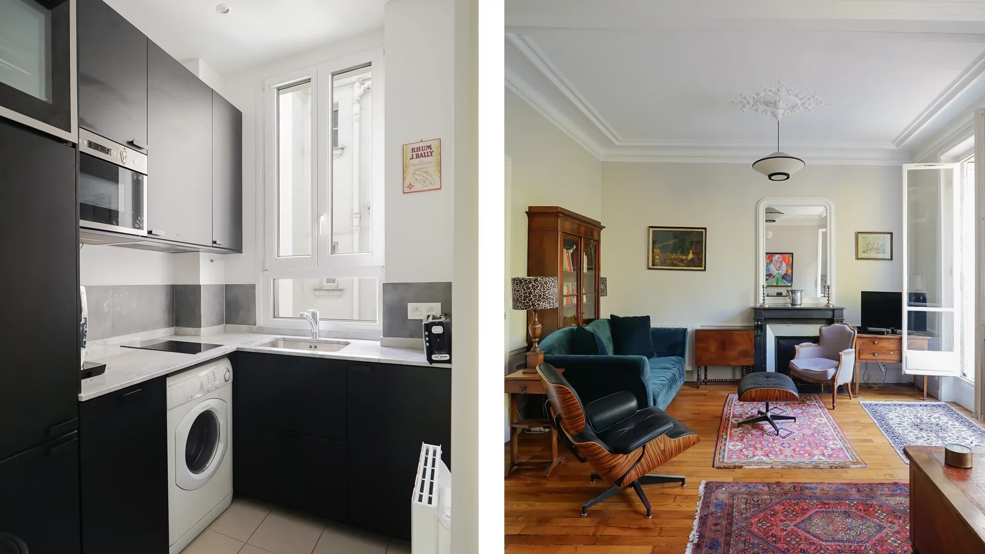 Côté cour, d'une cuisine indépendante équipée, d'une chambre spacieuse avec dressing, d'une salle d'eau et de toilettes séparées.