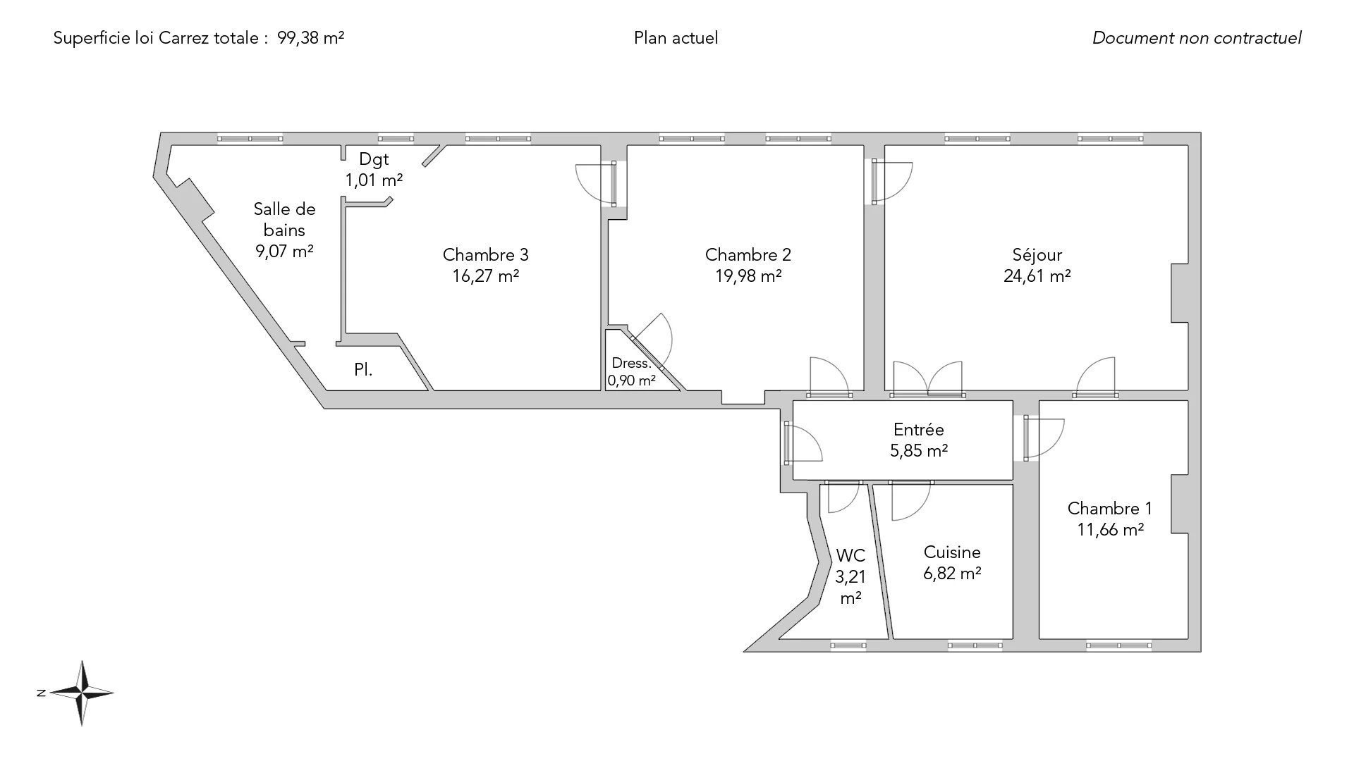 Idéalement situé à proximité de l'avenue Trudaine et de la rue des Martyrs, au sein d'un bel immeuble en pierre de taille dont le ravalement est voté, cet appartement de 99,38m² loi Carrez se situe au premier étage par escalier.
