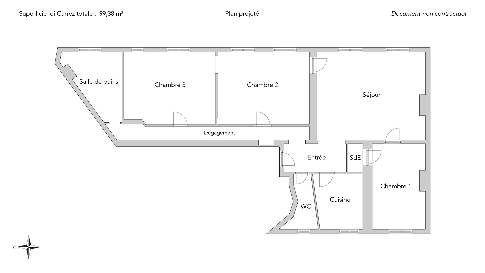 Il se compose d'une entrée, un beau séjour sur rue, deux ou trois chambres, une cuisine indépendante, une salle de bains et des toilettes séparées.