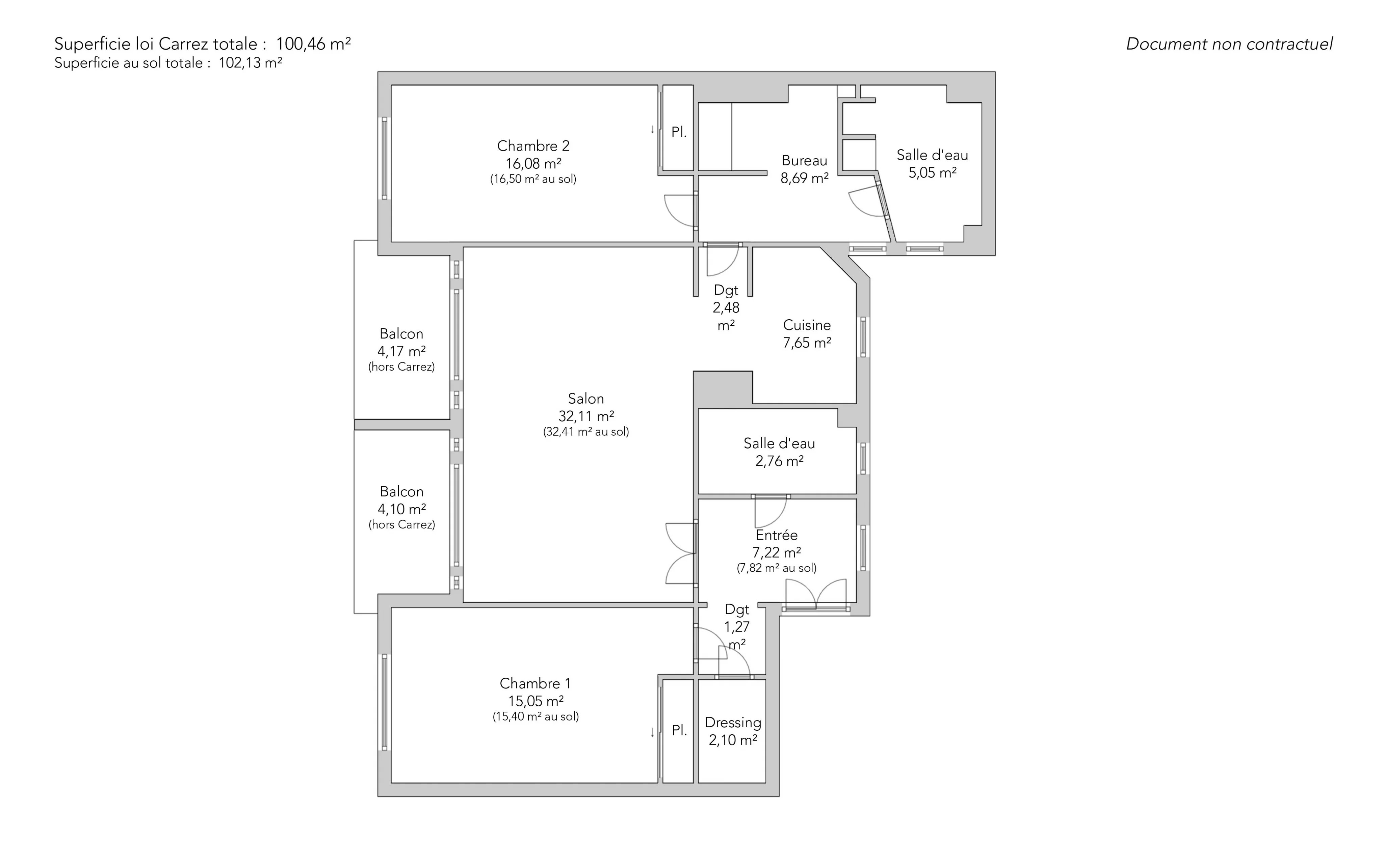 | 1x Séjour | 32.11 m² | Étage : 4ème |
